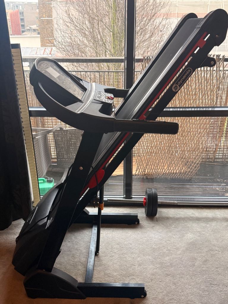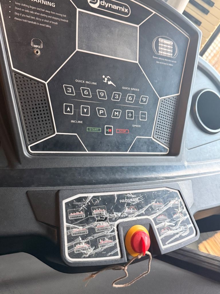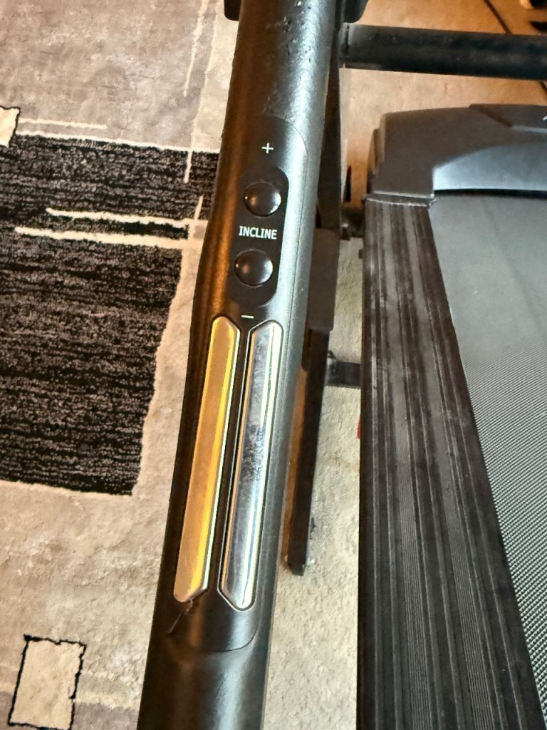 Works perfectly well. Has incline up to 15 levels, has options for running goals. Measures calories burned.