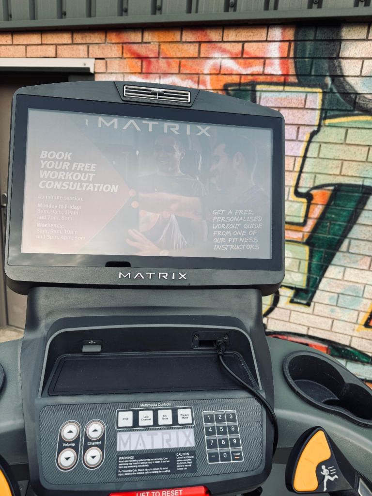 Commercial-grade Matrix T7xi treadmill, sourced directly from a professional running gym. This unit has been fully serviced, tested, and inspected, and is in complete working order.