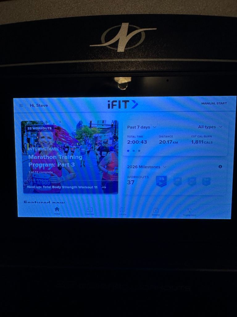 Can be used in conjunction with IFit (subscription required and not included), here you can access trainer led runs around the world, with the system linked to the machine meaning it can be set to speed up or down as well as raise the belt for going up hills. Or like me you can just zero all settings, stay flat and enjoy the view.