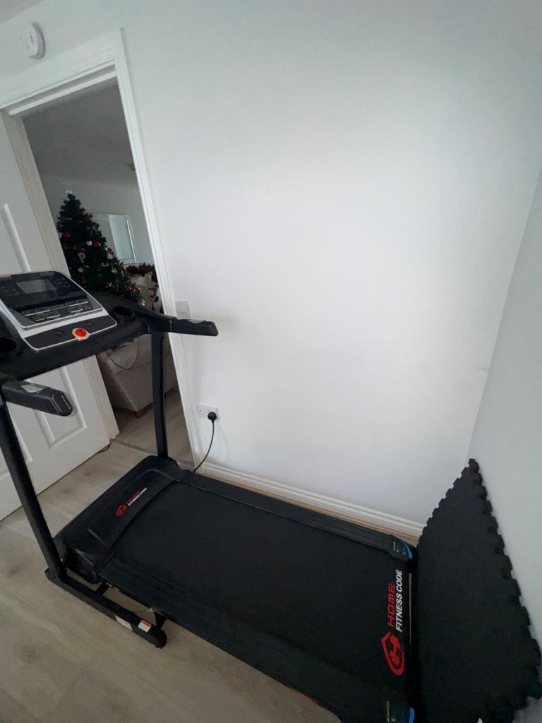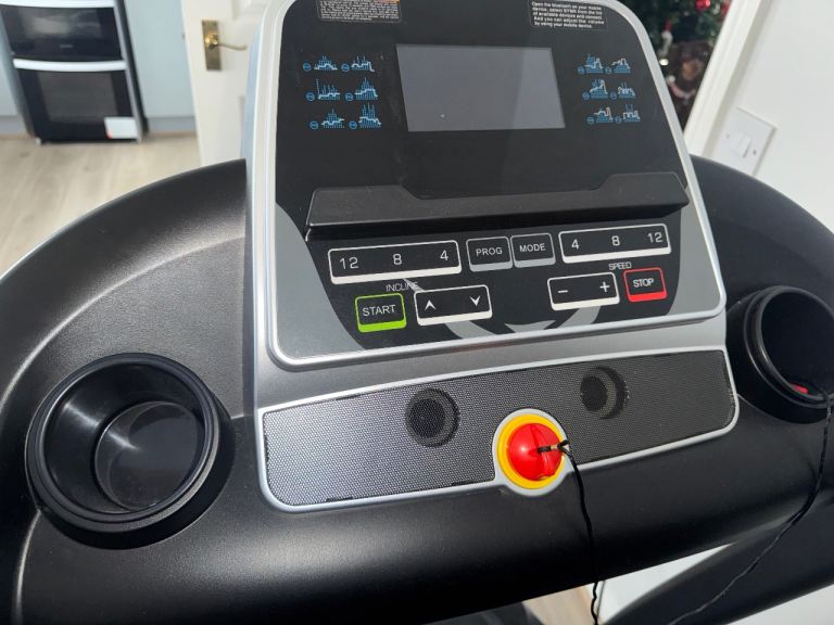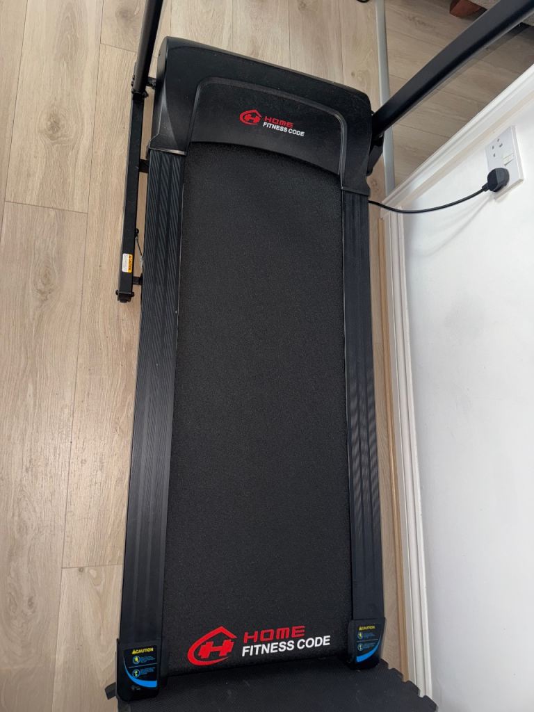 Folding treadmill 3.0 HP walking running machine 1-16KM/H with 0-15% Auto incline, Bluetooth Music,18 programs. In the colour black. Used a few times in great condition.