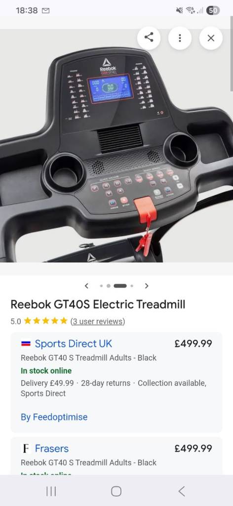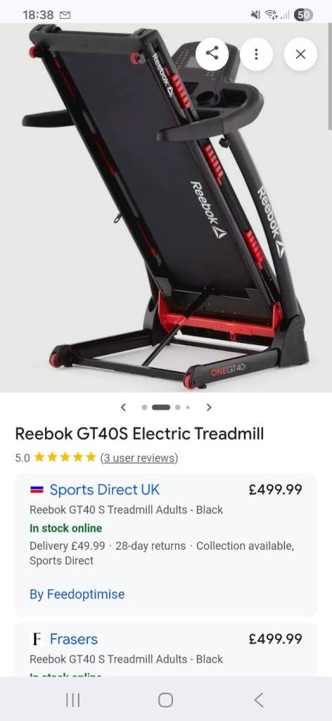 Reebok GT40S Treadmill. Hardly used. Excellent condition.