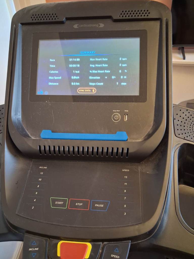 Gym Quality Cardiostrong TX50 Treadmill, in fantastic condition. Touchscreen - speed+ incline directly via console. Hand Pulse senor and receiver for heart rate monitor. 27 standard programs. Long running surface 150cm x 51cm. Media playback, and charging facility. Speed 0.8 - 20km adjustable in increments. Incline 0-10%. L(188cm W89cm H147cm Foldable for space saving or transporting. Folded measurements (L109cm W89cm H165cm. Selling as an absolute bargain £500 due to house move. Advertising this for my son so collection in person from Ramsbottom Bury.