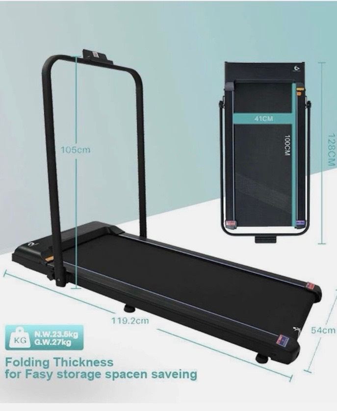 Speedy sports treadmill with remote control and folding bar. New fuse inserted. Faulty, E02 sign appears, needs fixing.