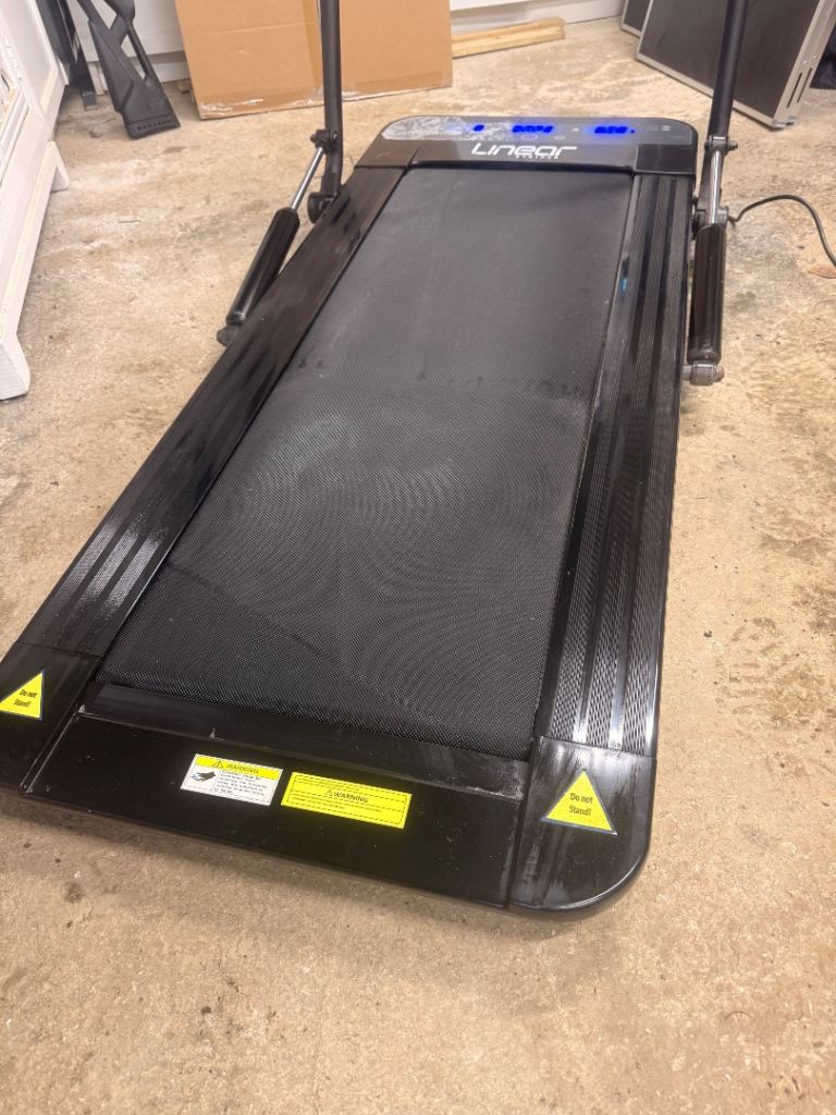 Up for sale is my Linear Strider walking machine — a motorised foldable treadmill ideal for walking, gentle cardio, and staying active at home.