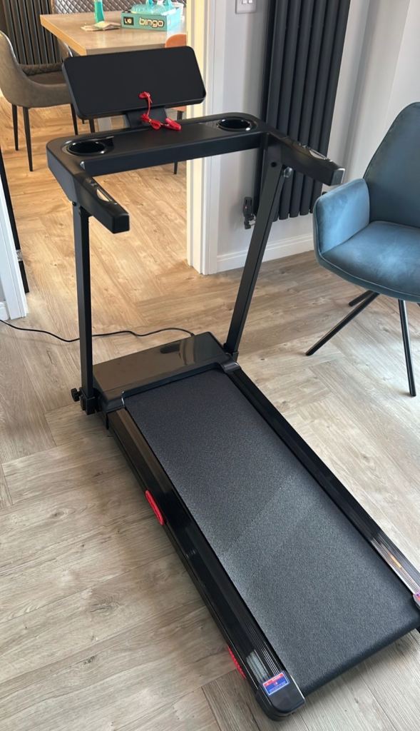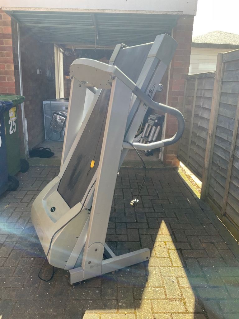 Not in a clean condition but it all works perfectly well. Folds up for storage and has wheels for ease of movement.