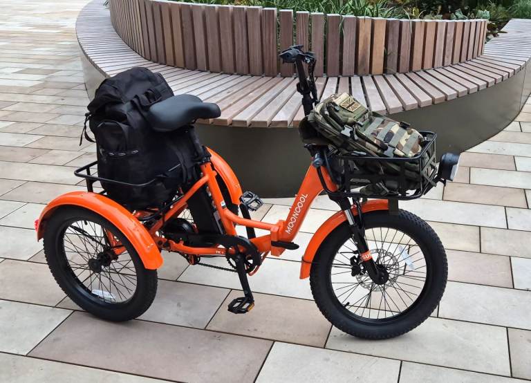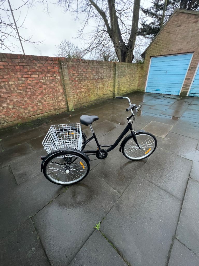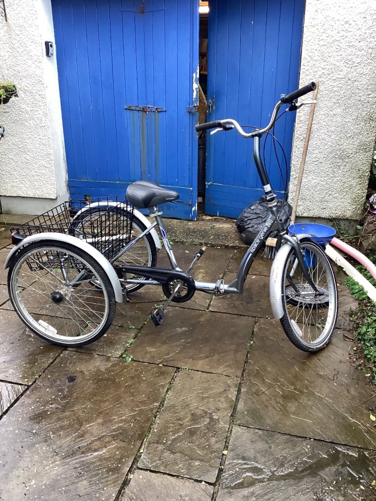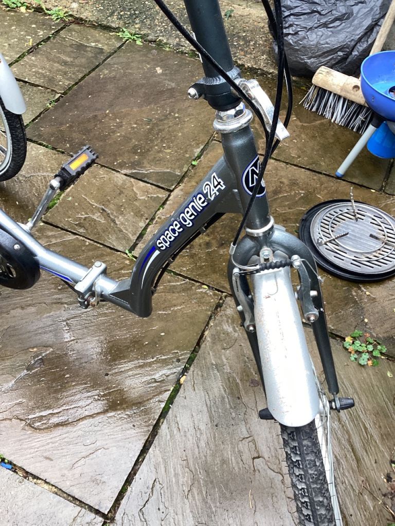 Mission Cycles adult tricycle, Space Genie 24. Front wheel folds in. Ideal for fun and mobility issues. Basket at rear. Bought for £300, gears serviced at the time, never used. Sell for £150 collection only.