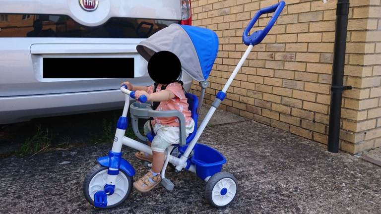 - STAGE 1 STROLL (9 MONTHS) - Parents can steer the trike with the waist bar in place and the footrest protecting the child’s feet.
