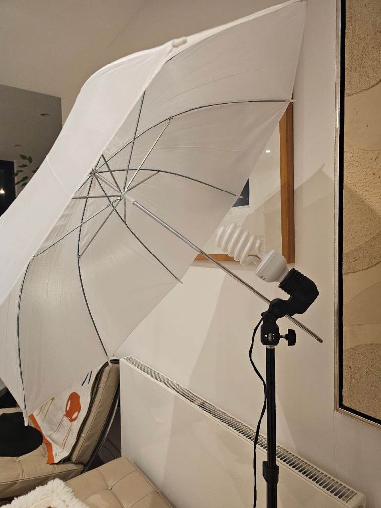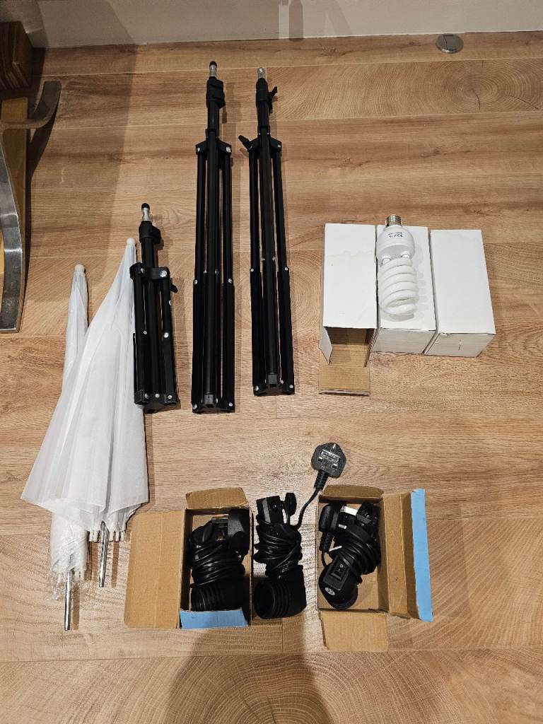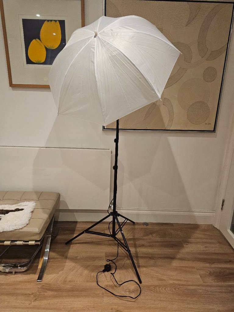 Almost new condition of photography umbrella + tripod stand kit foe sale. Fully working, never been used just open for the photograph.
