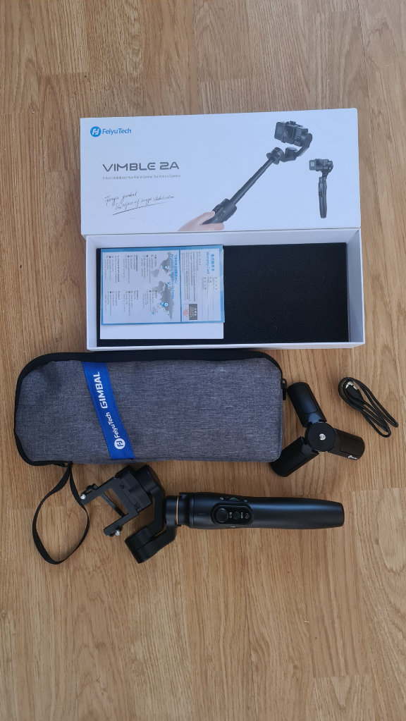 Gimbal stabilizer Feiyu Tech Vimble 2A for action camera GoPro Hero 5,6,7,is in good condition,with little use(has a small chip on the handle,but is not affecting use,check last picture),comes with every thing pictured.