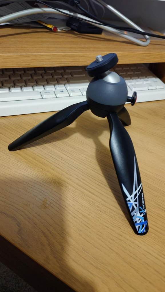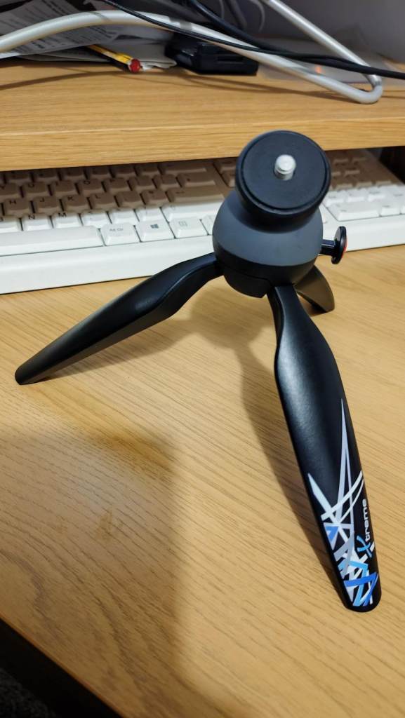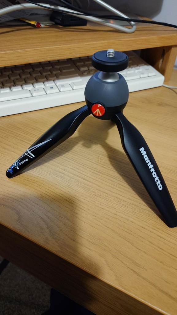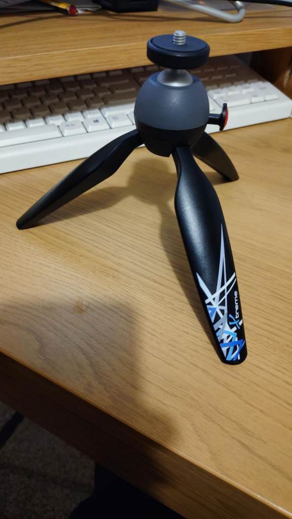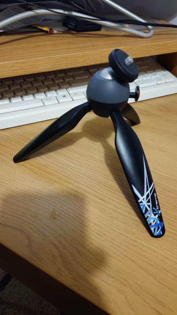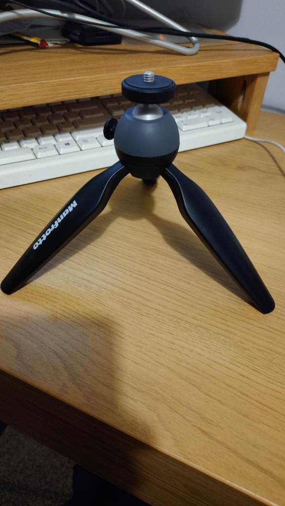 Bought for a European holiday but not needed or used ever, this mini tripod can be used as a supported three legged item, or close the legs and it can be very comfortably held in in one hand for takig video clips etc, it is in as new condition as can be seen. The head can be tilted in every way as specified below and locked in place at the push of a button, and there are no signs of wear or usage. Prefer personal pick up, or post out but has to be at cost.