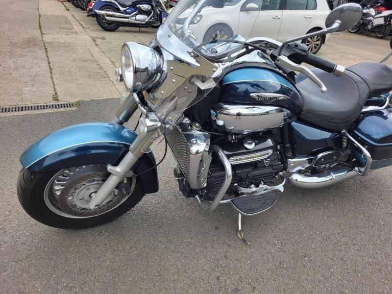 Blue Triumph Rocket 111 Touring, year 2007 (57 reg.), 27,456 miles. PLEASE VISIT OUR WEBSITE DIRECTLY FOR THE FULL RANGE OF UP-TO-DATE STOCK WHICH MAY NOT BE ON OTHER PLATFORMS. VIEWING STRICTLY BY APPOINTMENT ONLY. Visit [Website URL removed] call 01759 591666 or email [Email address removed. Click Email button to contact us.] for more details.