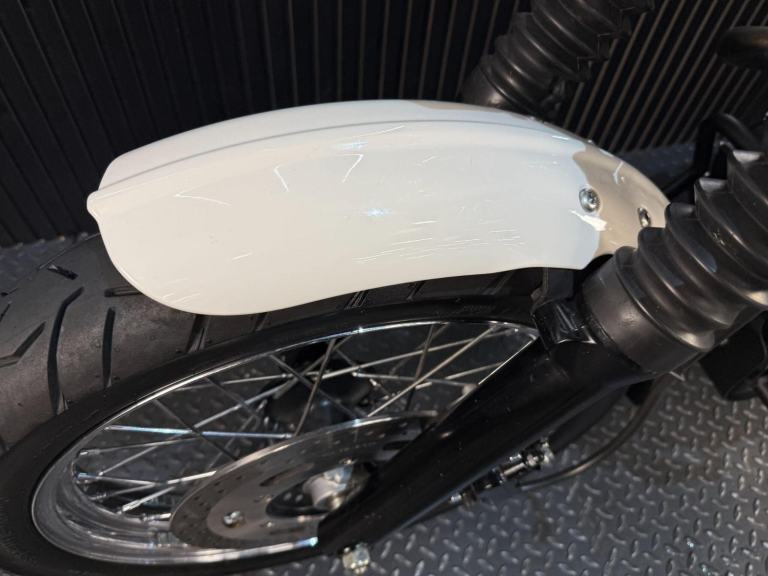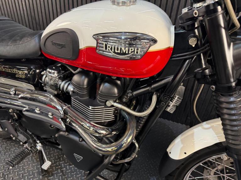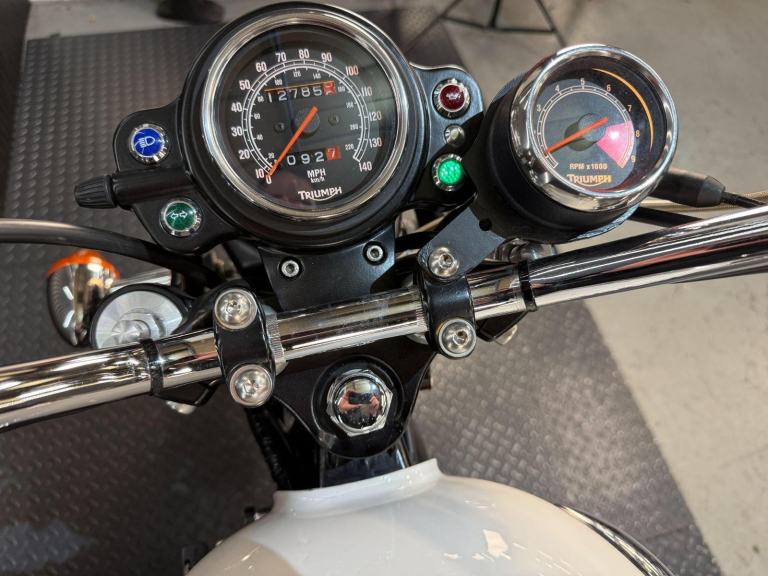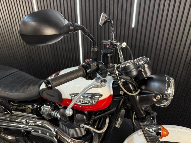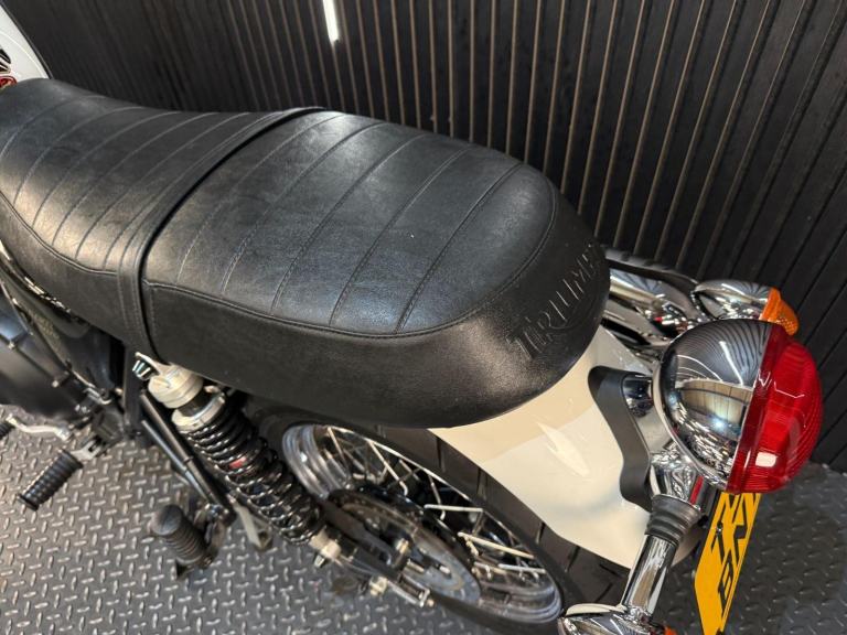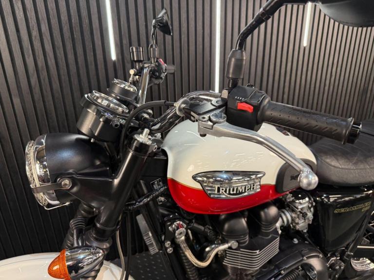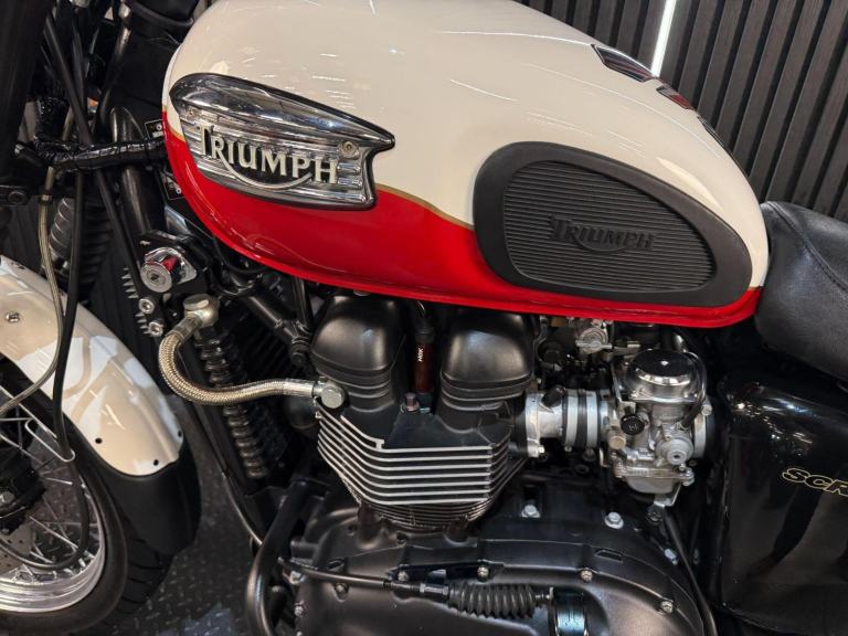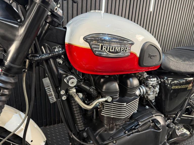 White, 24/7 ONLINE PURCHASE AVAILABLE - This 2008 Triumph Scrambler 900 is a pristine example of the ''Modern Classic'' that defined the retro-cool movement, finished in a clean and iconic Caspian White. With just 12,785 miles on the clock, this bike has been preserved in very good condition and has clearly been a fair-weather machine. It comes with a solid service history recorded up to 10,051 miles and has just been professionally prepared for its next owner with a comprehensive general inspection, a new oil filter, and a fresh oil change. For the rider who wants Steve McQueen style paired with Hinckley Triumph reliability, this is the perfect find. The 2008 Scrambler is a special model in Triumph's history as it marks the transition from carburetors to Electronic Fuel Injection (EFI). While the bike still features the classic ''carb-style'' throttle bodies to maintain its 1960s aesthetic, the fuel injection ensures it starts first time, every time, and offers much smoother throttle response. It is powered by the characterful 865cc air-cooled parallel-twin engine, which features a unique 270-degree firing order. This gives the Scrambler a much more ''off-beat,'' torquey, and soulful feel compared to the standard Bonneville of the same era. The design is pure heritage, dominated by the high-level twin exhaust system and the braced ''dirt-bike'' style handlebars. Despite its rugged, desert-sled looks, the Scrambler is remarkably easy to ride, featuring a manageable seat height and a 19-inch spoked front wheel that provides stable, predictable handling on the road.***Rest assured, your new bike includes a 3-month warranty (extension options available) and is guaranteed to have at least 6 months remaining on the MOT. Making your purchase simple: Explore our flexible finance plans and benefit from our affordable nationwide delivery service. Important Note on Viewing: Stock moves quickly! If you are planning to view a particular model, we kindly ask that you call us first to confirm its availability and avoid any disappointment***, 3 owners, Centre Stand, Electric start, Rear Hugger, Stainless Exhaust, Tank Pad, Please visit our website to buy online, apply for finance or find out about our delivery prices.