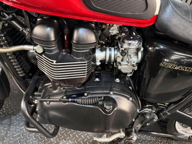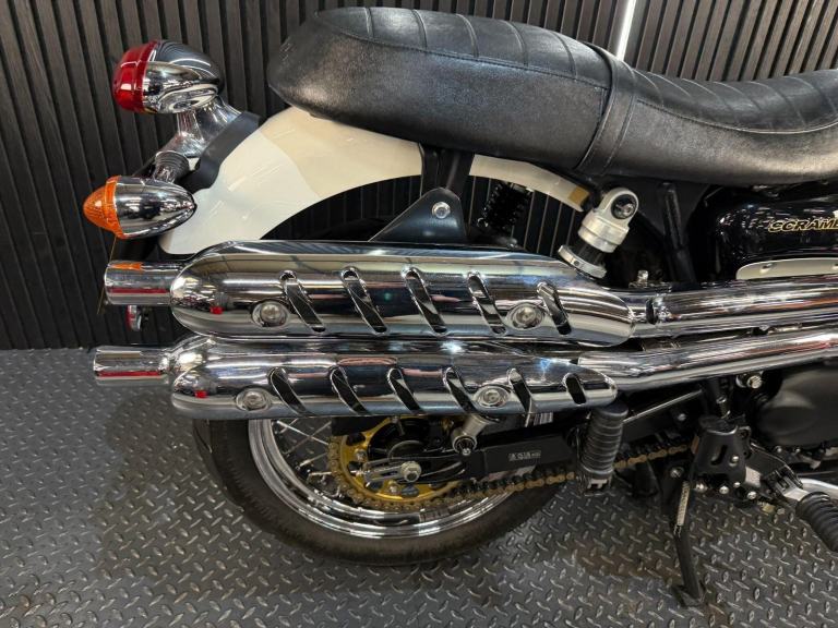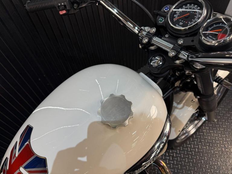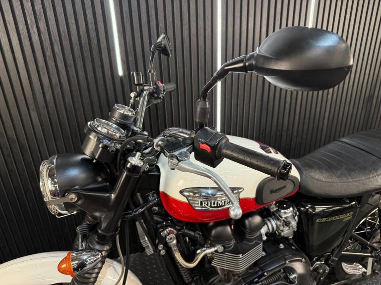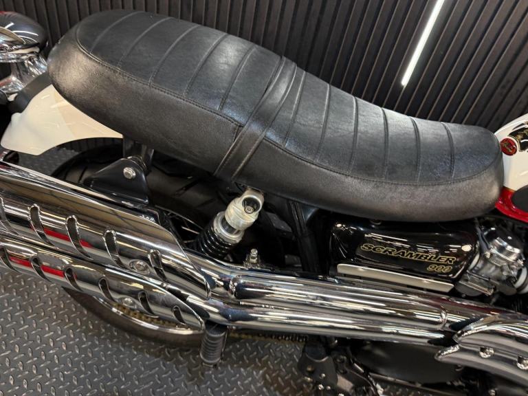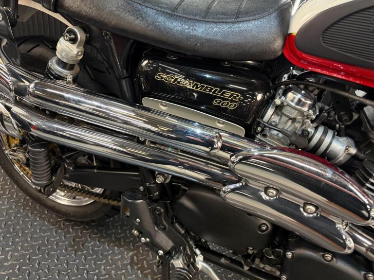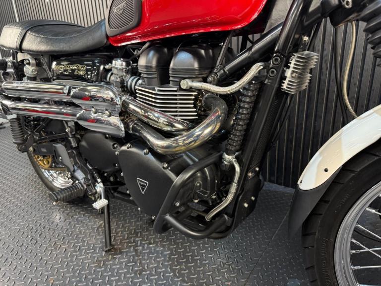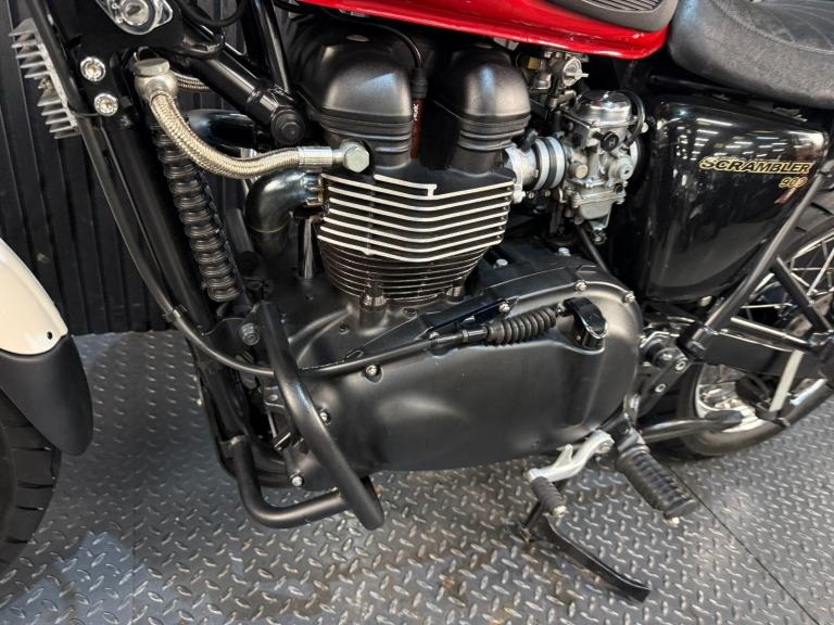 White, 24/7 ONLINE PURCHASE AVAILABLE - This 2008 Triumph Scrambler 900 is a pristine example of the ''Modern Classic'' that defined the retro-cool movement, finished in a clean and iconic Caspian White. With just 12,785 miles on the clock, this bike has been preserved in very good condition and has clearly been a fair-weather machine. It comes with a solid service history recorded up to 10,051 miles and has just been professionally prepared for its next owner with a comprehensive general inspection, a new oil filter, and a fresh oil change. For the rider who wants Steve McQueen style paired with Hinckley Triumph reliability, this is the perfect find. The 2008 Scrambler is a special model in Triumph's history as it marks the transition from carburetors to Electronic Fuel Injection (EFI). While the bike still features the classic ''carb-style'' throttle bodies to maintain its 1960s aesthetic, the fuel injection ensures it starts first time, every time, and offers much smoother throttle response. It is powered by the characterful 865cc air-cooled parallel-twin engine, which features a unique 270-degree firing order. This gives the Scrambler a much more ''off-beat,'' torquey, and soulful feel compared to the standard Bonneville of the same era. The design is pure heritage, dominated by the high-level twin exhaust system and the braced ''dirt-bike'' style handlebars. Despite its rugged, desert-sled looks, the Scrambler is remarkably easy to ride, featuring a manageable seat height and a 19-inch spoked front wheel that provides stable, predictable handling on the road.***Rest assured, your new bike includes a 3-month warranty (extension options available) and is guaranteed to have at least 6 months remaining on the MOT. Making your purchase simple: Explore our flexible finance plans and benefit from our affordable nationwide delivery service. Important Note on Viewing: Stock moves quickly! If you are planning to view a particular model, we kindly ask that you call us first to confirm its availability and avoid any disappointment***, 3 owners, Centre Stand, Electric start, Rear Hugger, Stainless Exhaust, Tank Pad, Please visit our website to buy online, apply for finance or find out about our delivery prices.