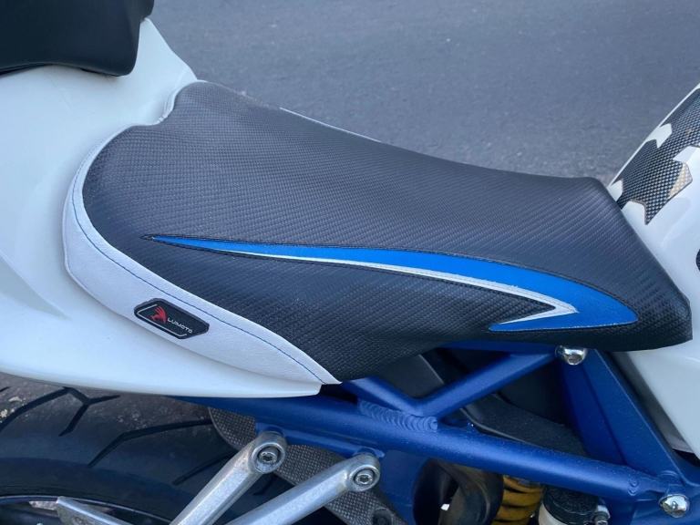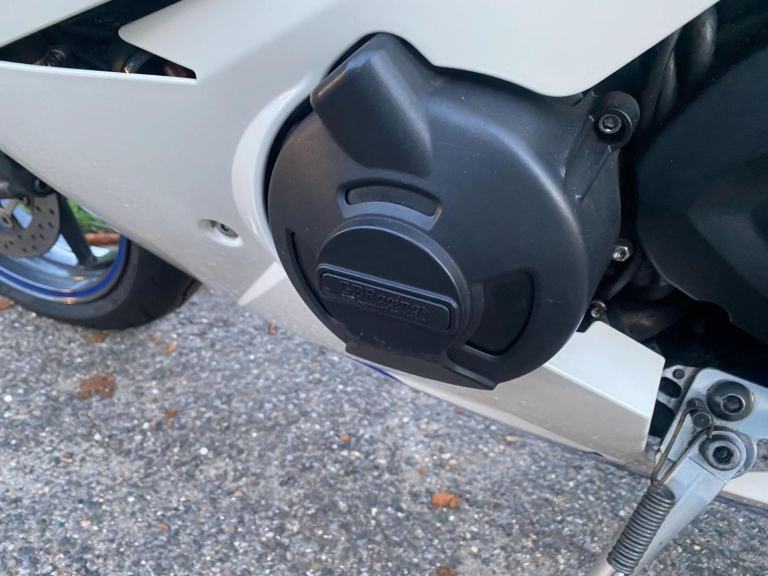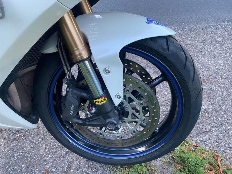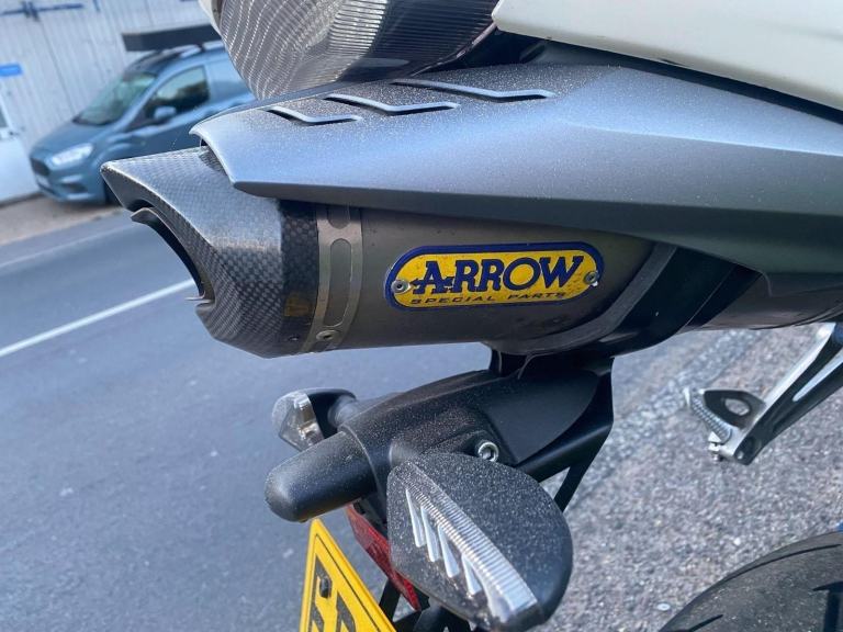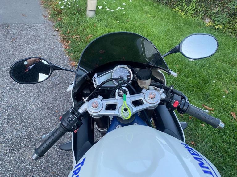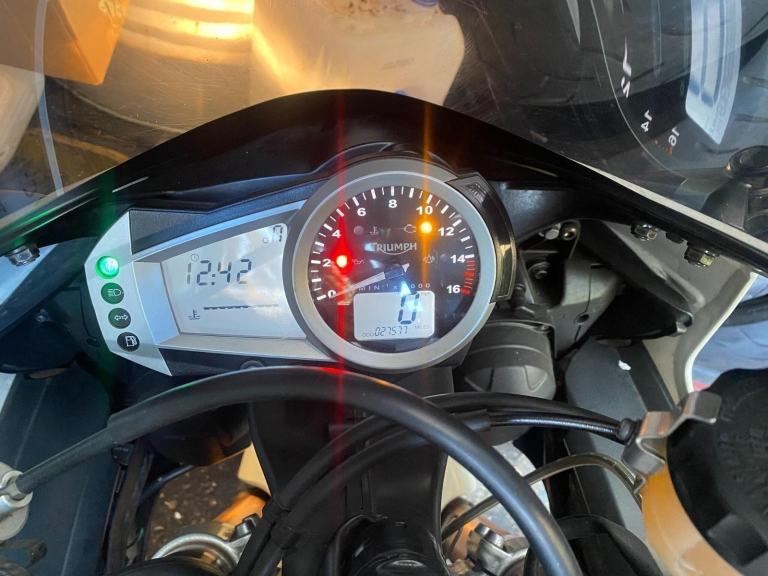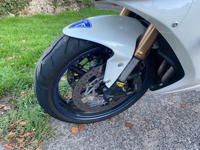 White, 2009 (09) Triumph Daytona 675 SE (ABS) Limited Edition in Pearl White with a striking Sparkle Blue frame that has covered 27577 miles.Fitted with an Arrow under-seat titanium end-can with a carbon tip that sounds superb.Also R and G tank grips-pads, carbon tank protector, R and G paddock stand bobbins, crash protector bungs, carbon hugger, carbon heel plates, GB Racing engine protectors and a tinted windscreen.The bike is in excellent condition and has been very well cared for.Recent new tyres fitted.Also 2 keys and a service record book with 9 dealer stamps which includes a valve clearance check at 25119 miles along with new spark plugs and air filter.Just serviced by us and ready to go.MOT until 18/5/2026Finance / Extended Warranties / Courier Delivery / Part-exchange are all available from WOOBURN GREEN MOTORCYCLES, 8 owners, , Courier Delivery / Finance / Part-Exchange and Extended Warranty are all available