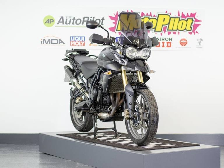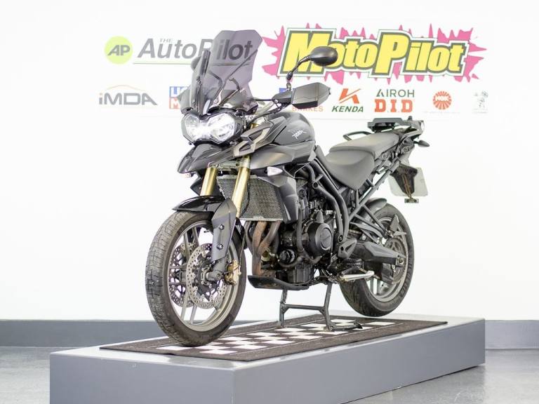 The quintessential adventure touring bike, Triumphs Tiger 800 hits the sweet spot for comfort and performance, all at an unbeatable price from the Motopilot! 34k miles. Lots of service history. 12 months MOT. This bike benefits from some thoughtful additions including: Centre stand. Heated grips. Beak. Puig tall screen, very useful and looks great! Lextek carbon exhaust with stainless link pipe. Top box and givi mount. Ready to take you around the world. Convenient Nationwide Delivery available with no hidden charges, mainland £250+VAT. Viewings are most welcome. Expect a warm welcome, complementary coffee and a team who are friendly, approachable and passionate about bikes and great cars! P/X, finance, warranty and all usual dealer facilities available. Check our website for high res imagery, 360 interactive images and video! WWW.THEAUTOPILOT.CO.UK.Centre Stand, Heated grips, Puig tall screen, Carbon Exhaust, Stainless Link Pipe,