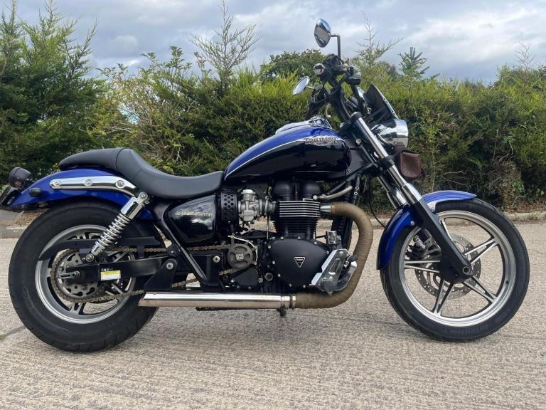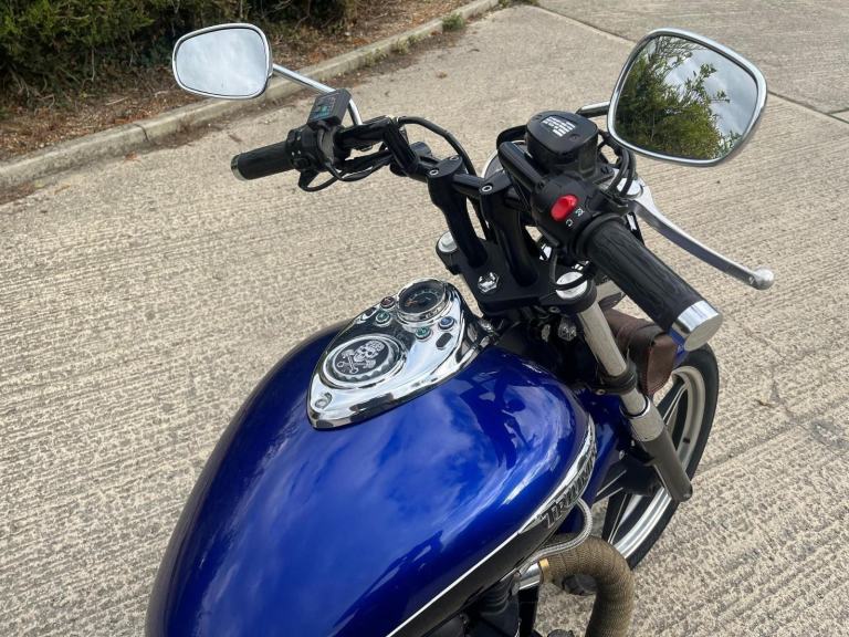Blue Triumph Speedmaster 865, year 2012 (62 reg.), 14,283 miles. MOT included in the price. PLEASE VISIT OUR WEBSITE DIRECTLY FOR THE FULL RANGE OF UP-TO-DATE STOCK WHICH MAY NOT BE ON OTHER PLATFORMS. VIEWING STRICTLY BY APPOINTMENT ONLY. Visit [Website URL removed] call 01759 591666 or email [Email address removed. Click Email button to contact us.] for more details.