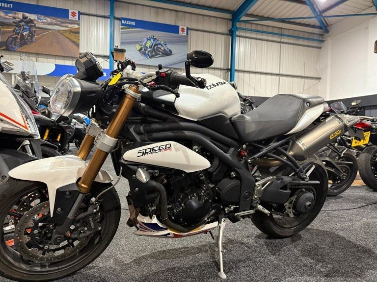 Just arrived in @ Powerslide Derby is this stunning example of the extremely popular Triumph Speed Triple 1050. This bike has been maintained to the highest standard and benefits from a full documented history, arrow exhausts and finished off in a stunning pearl white.
