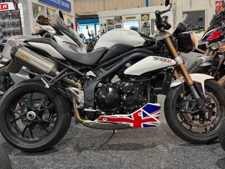 Just arrived in @ Powerslide Derby is this stunning example of the extremely popular Triumph Speed Triple 1050. This bike has been maintained to the highest standard and benefits from a full documented history, arrow exhausts and finished off in a stunning pearl white.