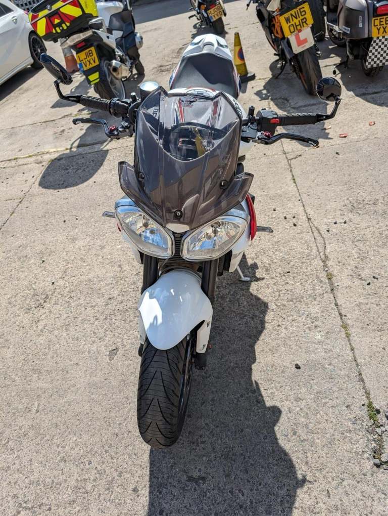 2013 13 TRIUMPH STREET TRIPLE 675 R, White, 19k miles, will have fresh 12 months MOT for purchaser, service history with 6 stamps in the book, very clean bike with some nice extras, Werkes USA exhaust system sounds mega, HPI clear.