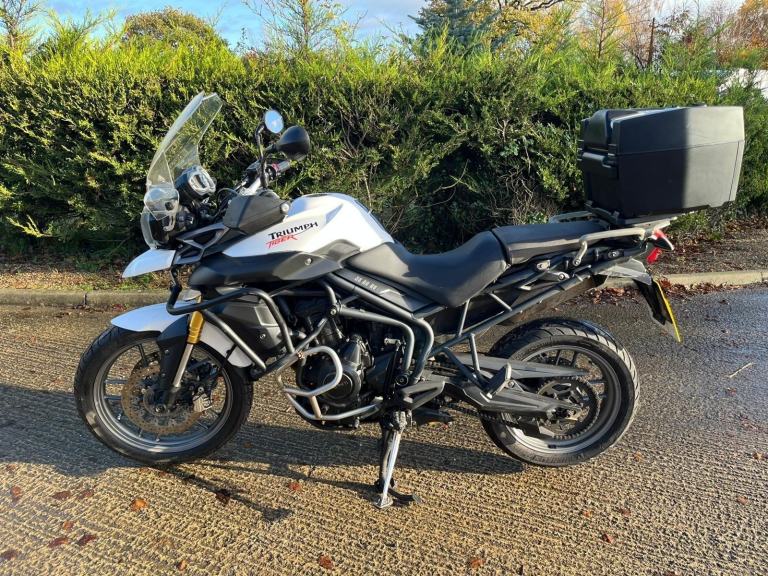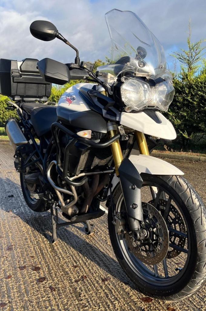 2013 13 TRIUMPH TIGER 800 ABS, White, 26k miles, will have new 12 months MOT for purchaser, Triumph top box, upper and lower crash protection bars, HPI clear.