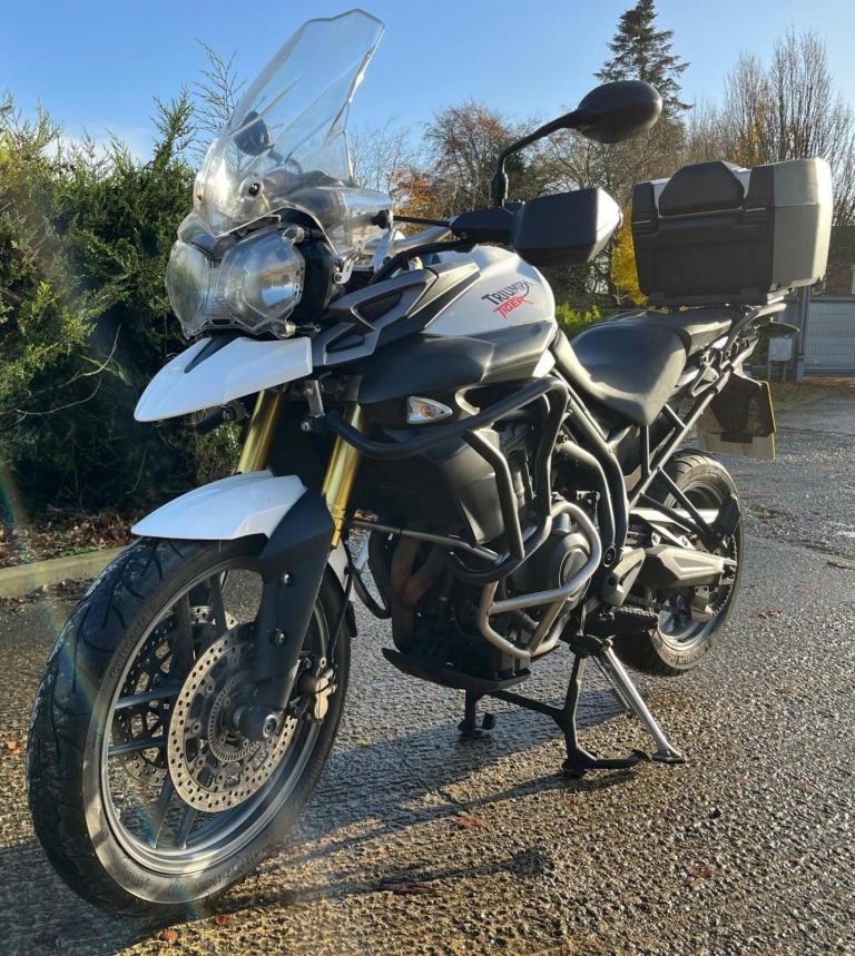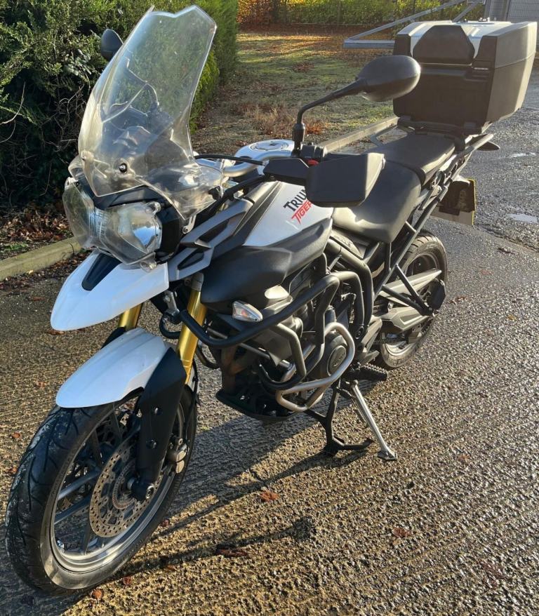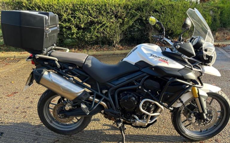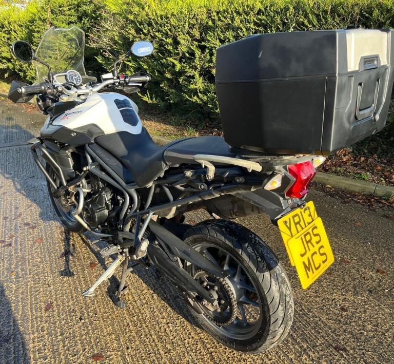 2013 13 TRIUMPH TIGER 800 ABS, White, 26k miles, will have new 12 months MOT for purchaser, Triumph top box, upper and lower crash protection bars, HPI clear.