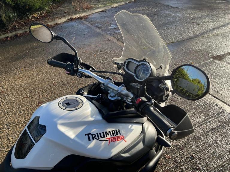 White Triumph Tiger 800, year 2013 (13 reg.), 26,018 miles. MOT included in the price. PLEASE VISIT OUR WEBSITE DIRECTLY FOR THE FULL RANGE OF UP-TO-DATE STOCK WHICH MAY NOT BE ON OTHER PLATFORMS. VIEWING STRICTLY BY APPOINTMENT ONLY. Visit [Website URL removed] call 01759 591666 or email [Email address removed. Click Email button to contact us.] for more details.
