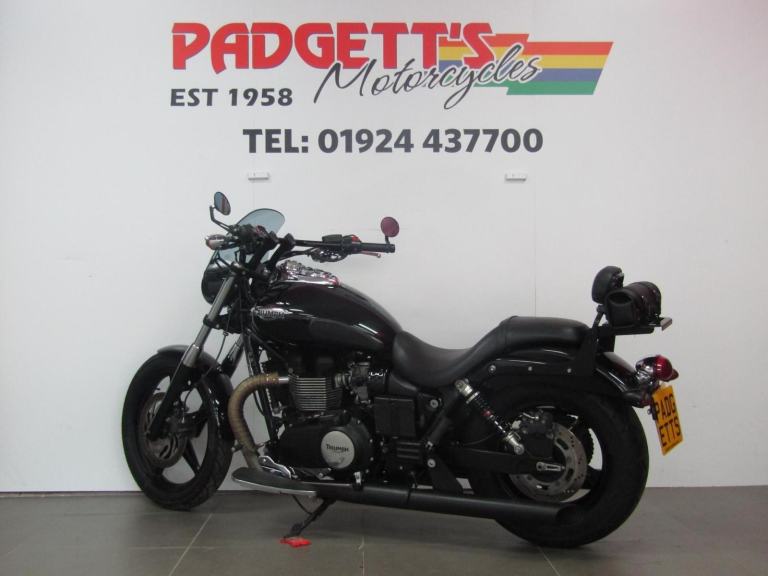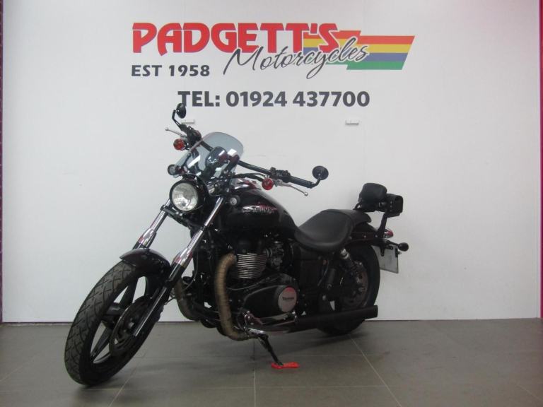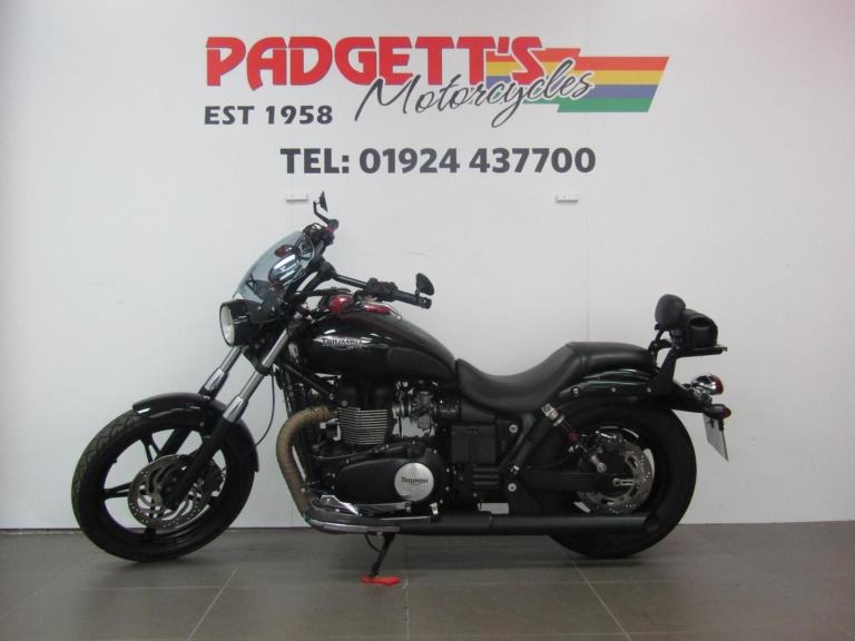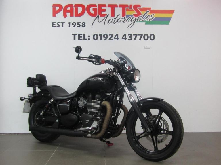 We present here for sale this Triumph Speed Maser 865 in Black. The bike has only covered 17,463 miles and is in good condition. The bike has been fitted with some superb extras including: - DART Screen, Sissy Bar with Back Rest and Roll Bag, Custom Exhausts, Bar End Mirrors and Tank Side Pads. The bike comes complete with Original Owner’s Manual, 2 Keys, Service Book Showing Part-Service History (9 Service Stamps) and Log book. The bike is available for viewing and is well worth a look. Finance is available and is subject to status. Part Exchanges welcome. Nationwide delivery can be arranged from as little as £75. Usual Dealer Facilities including a Large range of clothing, helmets & accessories. Call Padgett's Motorcycles today to ensure that you don't miss out; Suzuki Sales Centre 01924 609808, Honda Sales Centre 01924 437700 and Yamaha Sales Centre 01924 478491.
