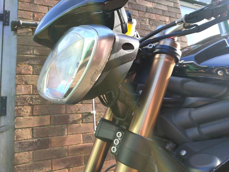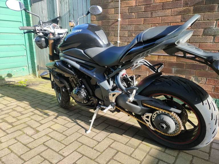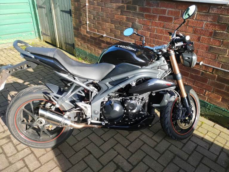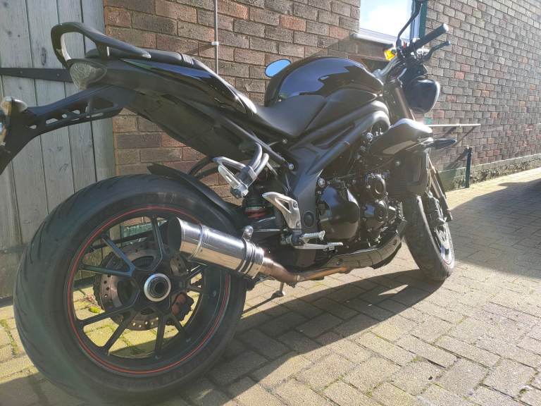2014 Triumph Speed Triple 1050 ABS. I am reluctantly selling this motorcycle as I no longer have the time to ride this bike as much as I would like to unfortunately. I have owned this bike from new and have looked after it well. It has had regular engine oil+filter and brake fluid changes, the last engine oil and filter change being at 12344 miles. The ABS unit has also been bled during one of the brake fluid changes. This bike has previously had the front fork oil replaced, the headstock bearings cleaned, adjusted, and re-greased as well as the rear hub bearings and rear suspension linkage bearings being cleaned and re greased. The coolant has also been replaced once during my ownership. It has a full original de-cat exhaust system with a short stubby can, a K&N air filter, and a Power Commander to sort the fuelling out. It has Domino throttle cables and grips, Evotech radiator guards and Pazzo levers. The bike is also fitted with a Shido LTX14 HP LiFePO4 battery with heavy duty battery cables to prevent any 'Hot start' issues that these bikes are known to develop. LED headlight bulbs are also fitted which are much better for visibility than the stock halogen bulbs. The spark plugs have been replaced not long ago along with the K&N air filter being cleaned and re-oiled around the same time. The bike produces an excellent, raw sound, unique to the Triumph triple. The rear brake pads, sprockets and the DID ZVM-X Super Heavy Duty X-Ring Premium Gold chain fitted are new. The bike shows signs of both it's age and use as shown in the pictures. Some of the notable cosmetic defects include a scuffed front fender, paint peeling from the rear grab rail, small scratches on the tank, a scratched rear hub and a scuffed left headlight which works perfectly. These can be seen in the images and video. I have all the original documentation which came with the bike and all the previous MOT certificates. All the service work has been carried out by myself beside the first run in service and I would be happy to answer any and all questions regarding this bike so feel free to send me a message. Serious buyers only and viewing is encouraged for said buyers. MOT expires 03/03/2026.