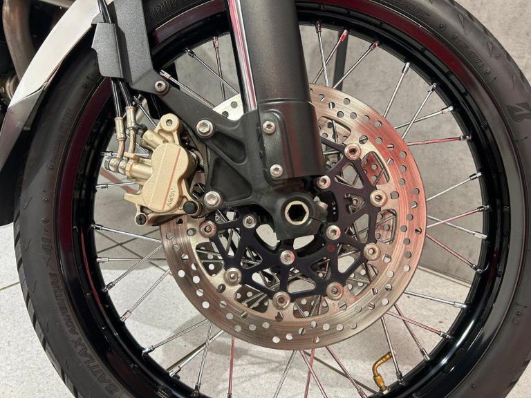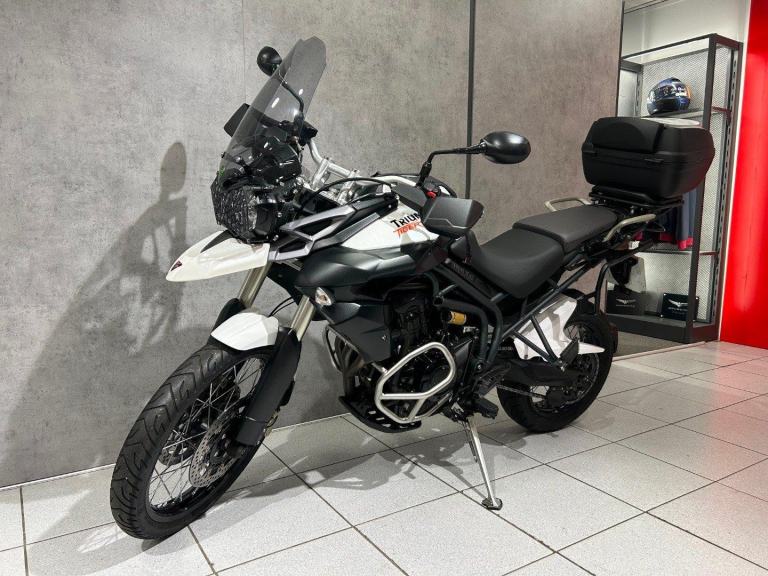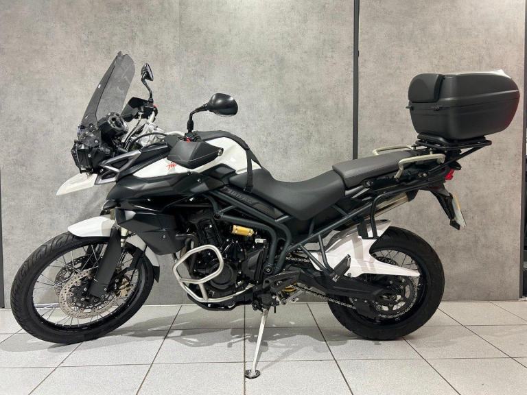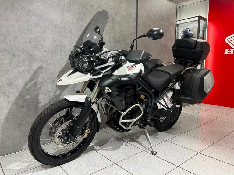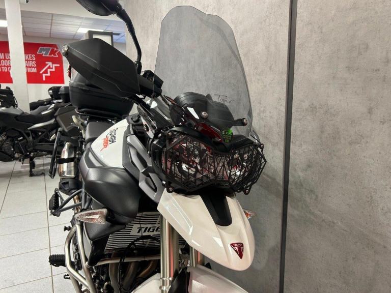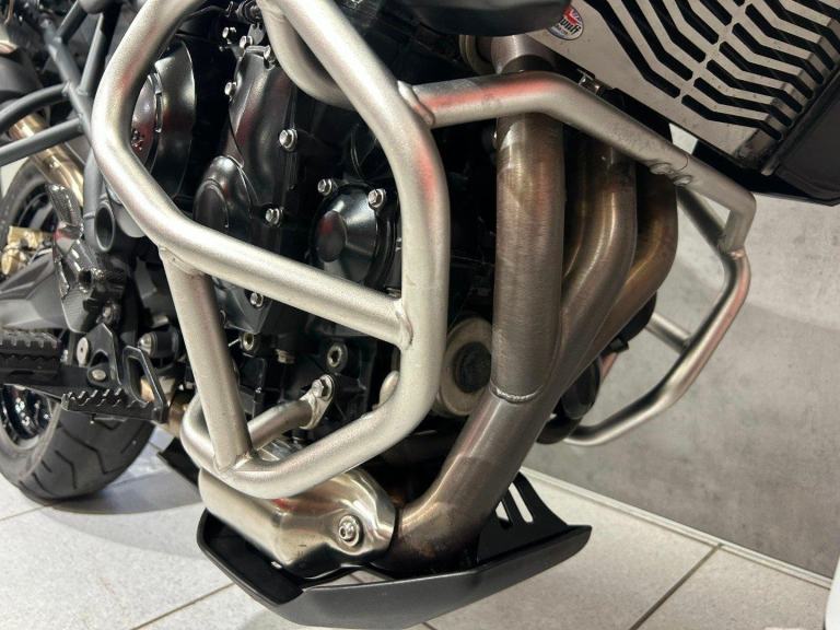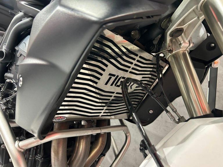 In fantastic condition, this excellent adventure machine is fitted with full Shad luggage, Triumph lower engine bars, hugger, headlight guard, handguards, radiator guard, tall screen and carbon effect kickplates. Serviced at 521, 3289, 3412, 3923, 5938, 6669 and 10005 miles, this machine has recently been valeted in preparation of sale, with nationwide delivery available. If viewing on eBay, visit our website Miles Kingsport Motorcycles for more photos. Standard kickplates and chain guard included.
