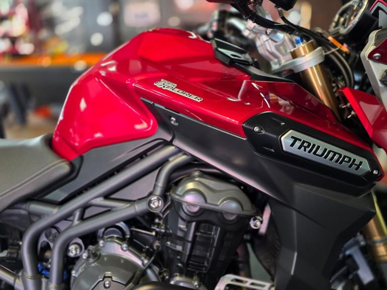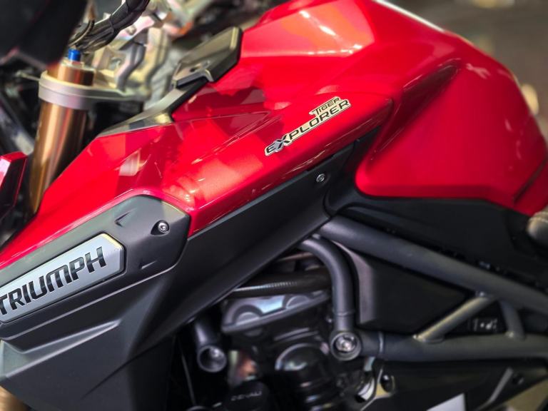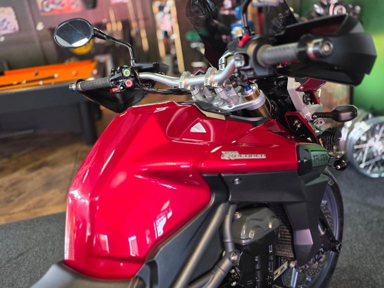 2015/65 Triumph Explorer 1215cc in Red Metallic with 15,000 Mile's. 3 x Triumph Luggage, PipesWerx Exhaust, Anodised Levers, Heated Seats and Grips, Additional Spot Lights, MRA Vario Screen, Low Crash Bars, R & G Bobbins etc.. £5,995