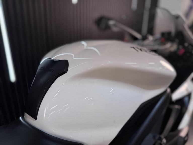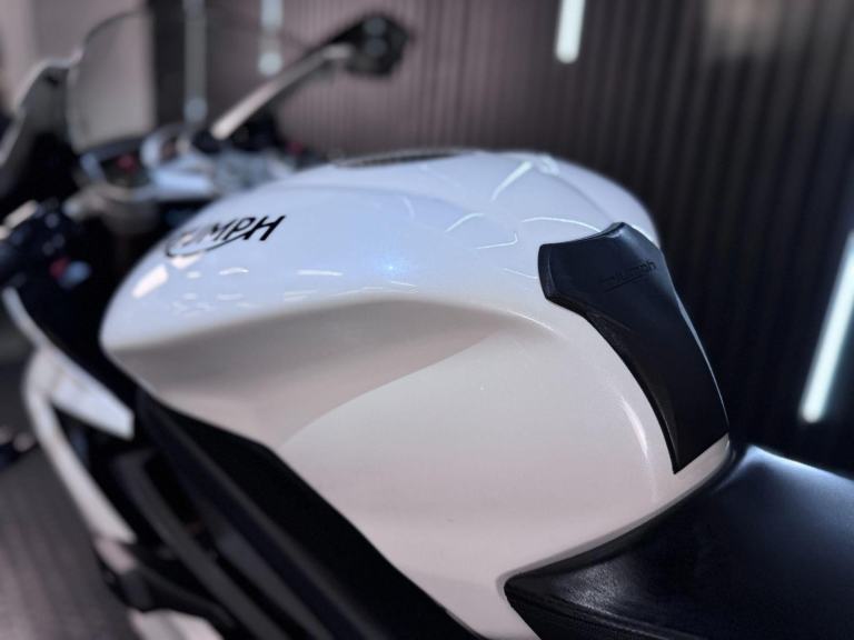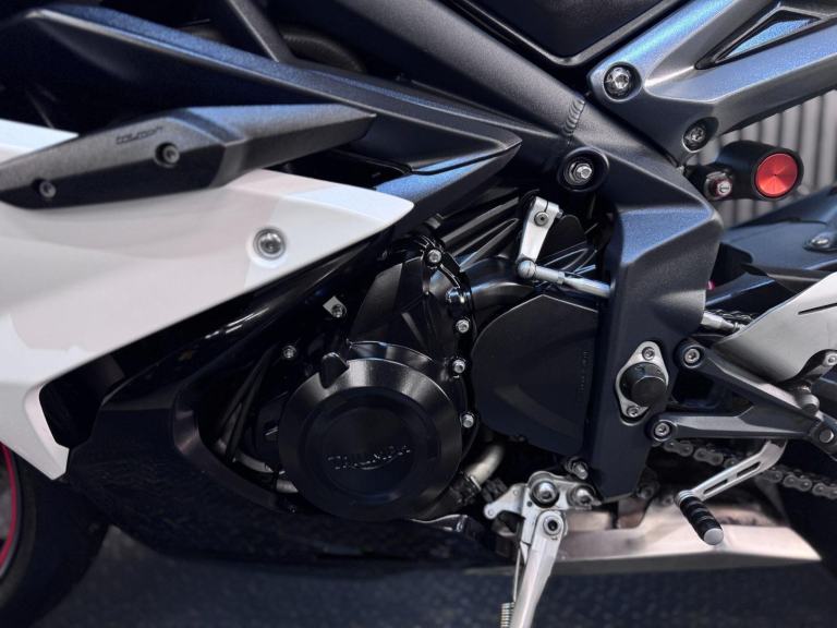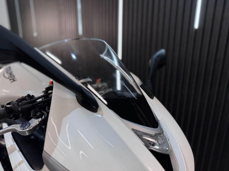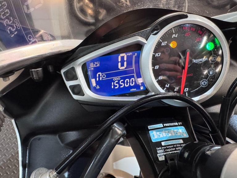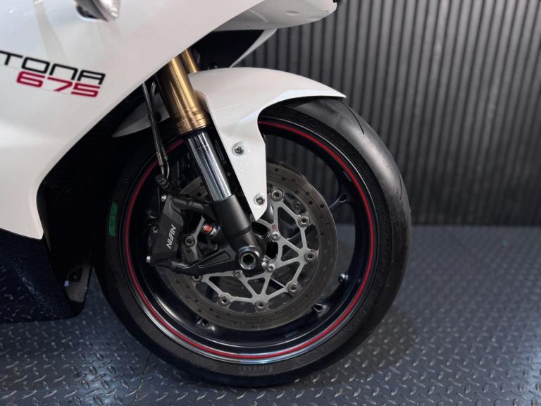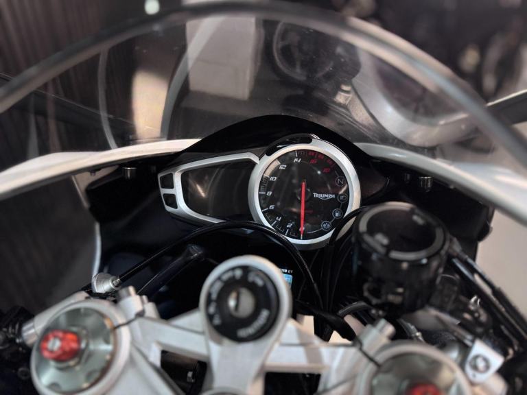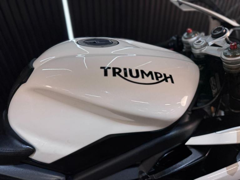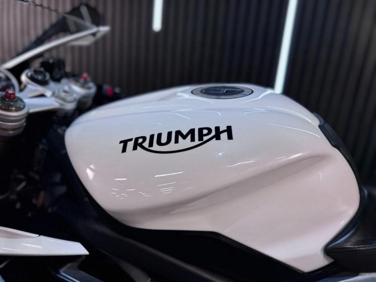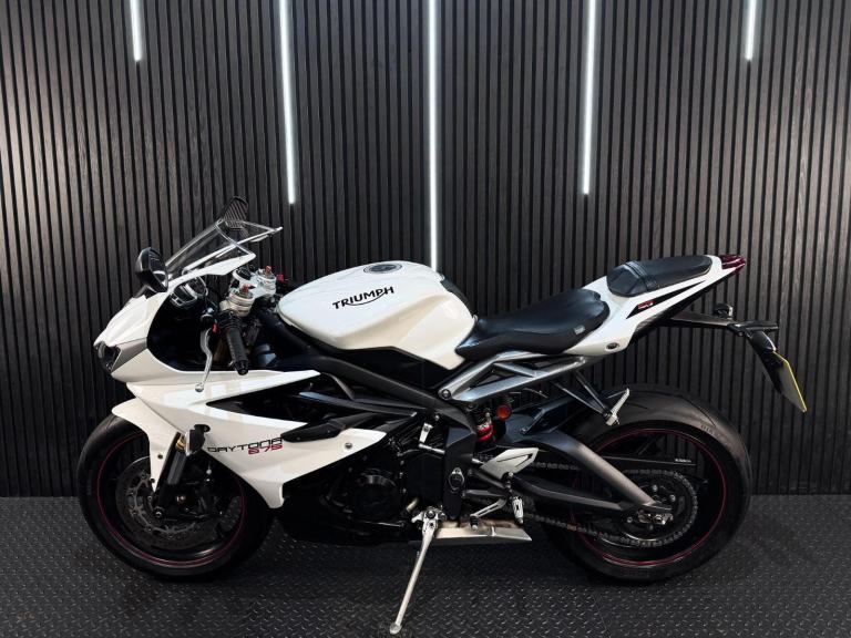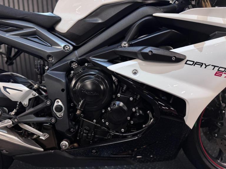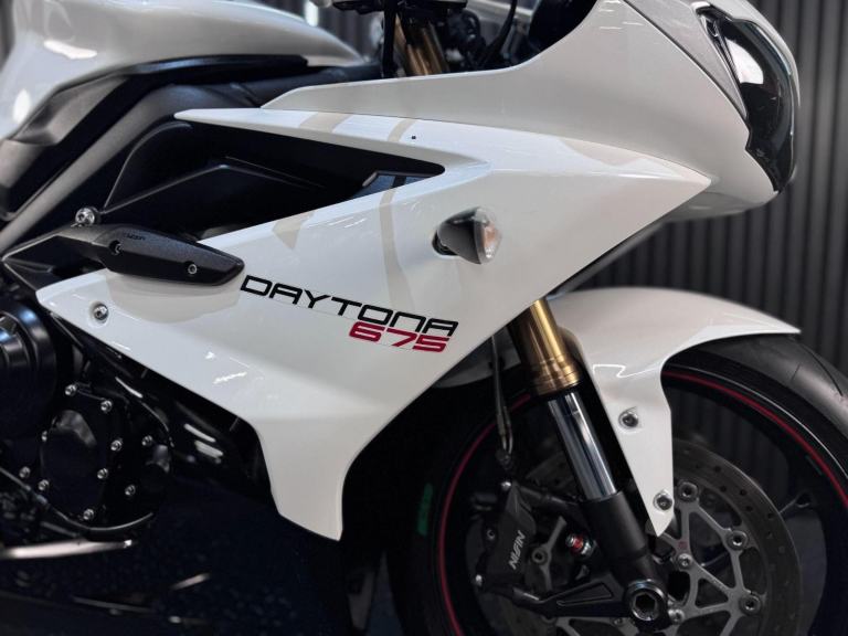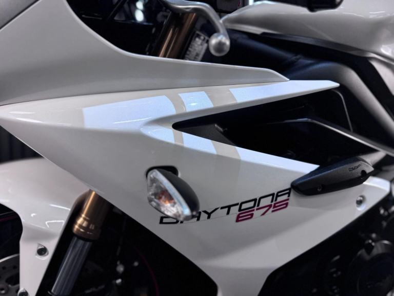 White, 24/7 ONLINE PURCHASE AVAILABLE - For sale is this sharp and iconic 2015 Triumph Daytona 675, finished in the striking Crystal White and Sapphire Blue colorway. This bike has covered 15,500 miles and has been maintained to a high standard, presenting in beautiful condition. The Daytona's narrow profile and aggressive, tucked-in styling make it look fast even when it's standing still. For your complete peace of mind, it has just received a fresh oil and filter change along with a full general inspection by our technicians, ensuring it is ready for the twisties or the track. It comes complete with two keys and all relevant documentation. The Triumph Daytona 675 is the definitive choice for the rider who wants surgical precision and a unique engine note. It is powered by the legendary 675cc three-cylinder engine, producing a potent 126 BHP. What sets the 2015 model apart is its perfectly balanced chassis; it features a frame designed for maximum agility and a narrow engine layout that allows for extreme lean angles. The bike is equipped with high-spec KYB adjustable suspension and powerful Nissin radial-mount calipers that provide incredible stopping power and feel. This generation also features a factory-fitted slip-assist clutch, which reduces the effort at the lever and keeps the rear wheel stable during aggressive downshifts. With its high-revving nature and that unmistakable triple-cylinder ''wail,'' the Daytona 675 remains the definitive choice for the rider seeking a pure, focused, and rewarding sportbike experience that many consider the peak of 600-class engineering.***Rest assured, your new bike includes a 3-month warranty (extension options available) and is guaranteed to have at least 6 months remaining on the MOT. Making your purchase simple: Explore our flexible finance plans and benefit from our affordable nationwide delivery service. Important Note on Viewing: Stock moves quickly! If you are planning to view a particular model, we kindly ask that you call us first to confirm its availability and avoid any disappointment***, 0 owners, 2 keys, ABS, Belly Pan, Electric start, Rear Hugger, Screen, Stainless Exhaust, Please visit our website to buy online, apply for finance or find out about our delivery prices.