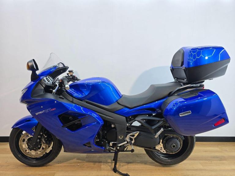 Blue, This 2015 Triumph Sprint GT 1050 SE is an outstanding purchase for the serious tourer who refuses to compromise on character and performance. Built around Triumph?s iconic and muscular 1050cc triple-cylinder engine, this machine delivers a smooth, torque-rich powerband that makes effortless work of long-distance motorway hauls while remaining incredibly engaging on twisty A-roads. The ''GT'' (Grand Tourer) designation means it is factory-honed for stability, comfort, and massive carrying capacity.This Special Edition model is the ultimate turn-key touring package, coming fully loaded with a full luggage kit, including the genuine top box and panniers for maximum storage. Long-range comfort is guaranteed with heated grips, a clear screen for excellent wind protection, and a RAM mount already fitted for your navigation devices. Practicality is a major highlight, featuring a centre stand for easy maintenance, grab handles for pillion security, and the signature single-sided swingarm that makes rear-wheel access a breeze while looking [Website URL removed] with a clear semi-digital display, this 2015 Sprint GT 1050 SE offers incredible value for money as a high-spec, ultra-reliable continent-crosser.This motorcycle is available for collection from our Derbyshire showroom or can be delivered directly to your door. At Mallory Motorcycles, every bike comes with a Comprehensive Warranty as standard. We also offer nationwide delivery, including Northern Ireland and the Republic of Ireland.Part exchanges are welcome. Purchasing from Mallory Motorcycles includes the added benefits of a clear HPI check from Experian, and no fees for credit card, debit card or bank transfer payments.All motorcycles undergo a full Pre-Delivery Inspection to ensure they meet our high standards. Please note that prices exclude road fund license (tax)., 2 owners,