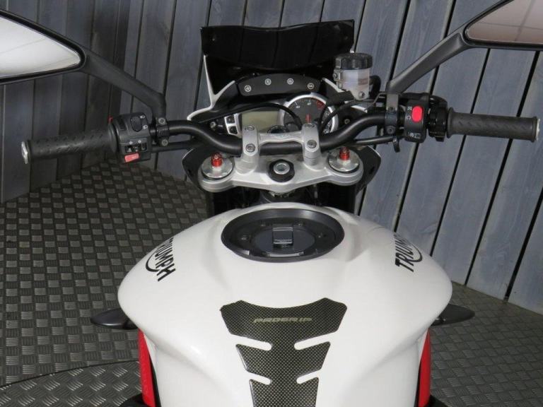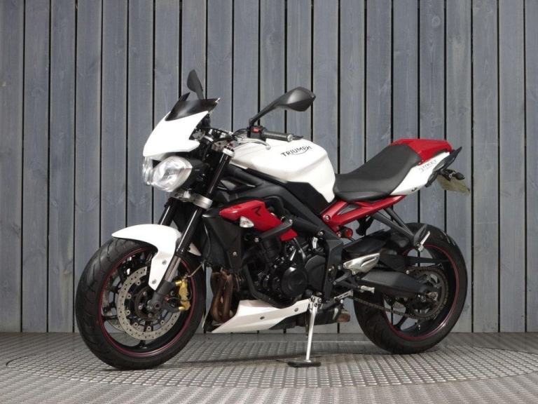 This 2016 WHITE TRIUMPH STREET TRIPLE 675 motorbike has done 15264 miles and is in excellent condition. It's available for collection from our DONINGTON showroom or can be delivered anywhere on the UK Mainland. This bike has 3 previous owners, comes with 2 Keys, and a PART SERVICE HISTORY.