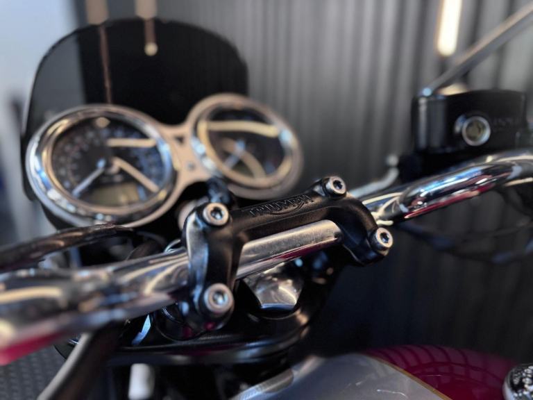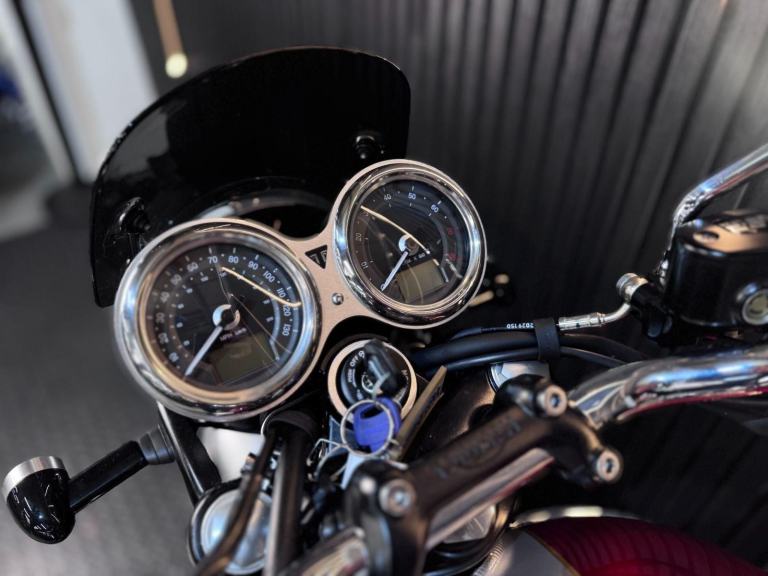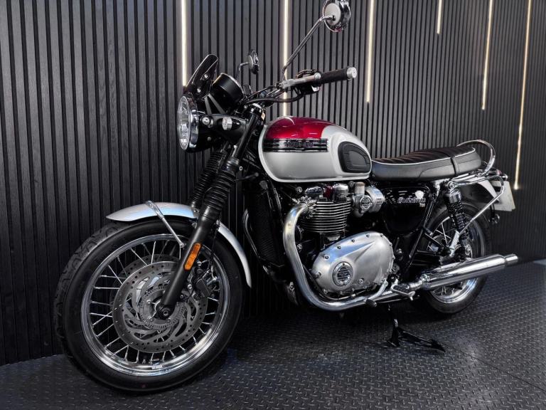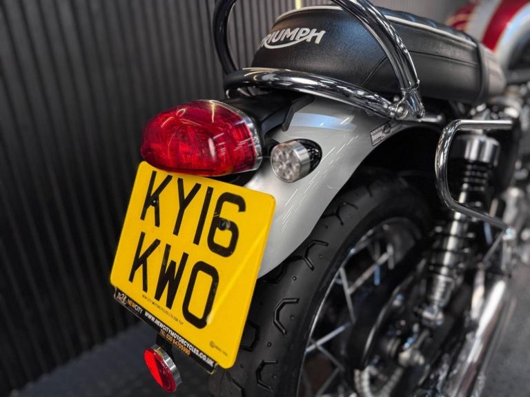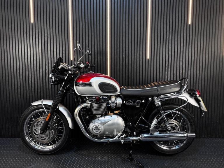Red, 24/7 ONLINE PURCHASE AVAILABLE - For sale is this timeless and impeccably preserved 2016 Triumph Bonneville T120, finished in the classic and regal Cranberry Red and Silver Ice two-tone paint scheme. This machine has covered an exceptionally low 3,173 miles?an average of just a few hundred miles per year?and is in stunning, collector-quality condition. With its abundance of high-quality chrome, peashooter exhausts, and wire-spoked wheels, it is the ultimate expression of British motorcycling heritage. For your complete peace of mind, it has just received a fresh oil and filter change along with a full general inspection by our technicians. It comes complete with two keys and all relevant documentation. The Triumph Bonneville T120 is the definitive choice for the rider who wants authentic vintage style paired with effortless 21st-century performance. It is powered by the 1200cc parallel-twin ''High Torque'' engine, producing a massive 105 Nm of torque at a remarkably low 3,100 rpm. This means you have instant, surging power in any gear without needing to chase the redline. What sets the T120 apart is its seamless integration of modern safety and comfort; despite its retro looks, it features Ride-by-Wire throttle, switchable Traction Control, ABS, and even factory-fitted heated grips as standard. It offers two riding modes, ''Road'' and ''Rain,'' allowing you to tailor the power delivery to the conditions. With its relaxed, upright riding position and comfortable bench seat, the T120 remains the definitive choice for the rider seeking a sophisticated, soulful, and prestigious motorcycle that handles long-distance tours and Sunday morning coffee runs with equal elegance.***Rest assured, your new bike includes a 3-month warranty (extension options available) and is guaranteed to have at least 6 months remaining on the MOT. Making your purchase simple: Explore our flexible finance plans and benefit from our affordable nationwide delivery service. Important Note on Viewing: Stock moves quickly!***, 0 owners, 2 keys, ABS, Centre Stand, Electric start, Stainless Exhaust, Tinted Screen, Please visit our website to buy online, apply for finance or find out about our delivery prices.