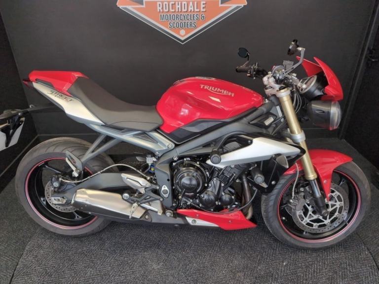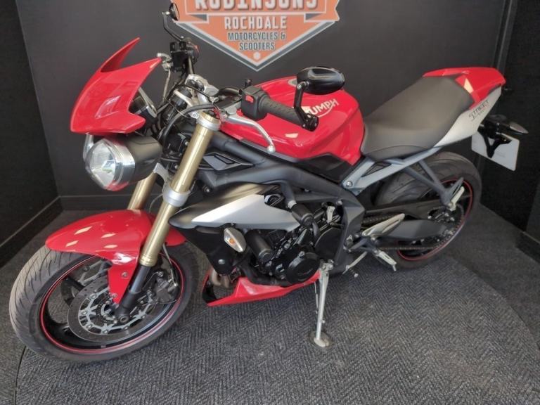 2016 Triumph Street Triple 675 ABS in Red with 8818 miles. Great looking example of the popular Street Triple from Triumph. The bike benefits from a seat cowl, crash bungs and bar end mirrors. Bike comes with two keys and owners manual plus old MOT's. If it’s a new or used Motorcycle or Scooter you are after then look no further, Robinsons can make your dream come true, Nationwide delivery, Extended warranty, On site clothing, Parts and accessories department on site and a good coffee machine so pick up the phone or pop down to see us 7 days a week. Call 01706 716650 or WhatsApp 01706 716650. Email [Email address removed. Click Email button to contact us.]