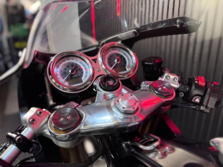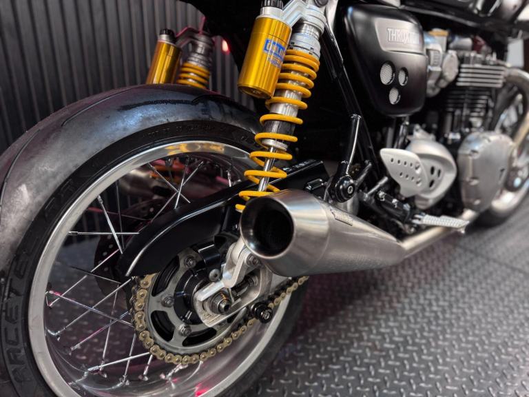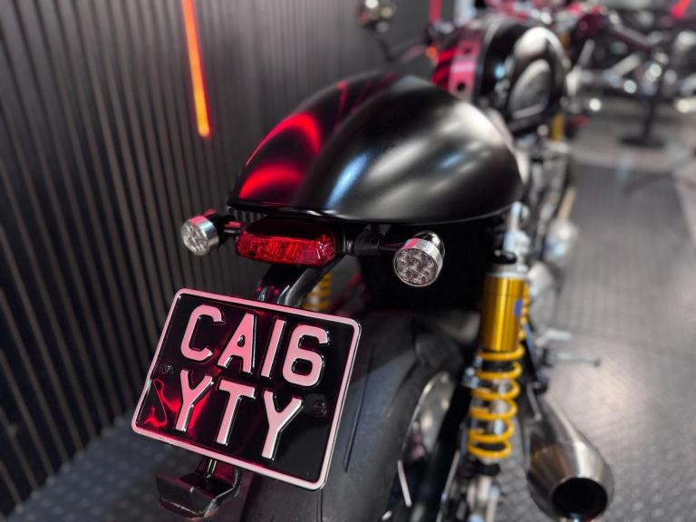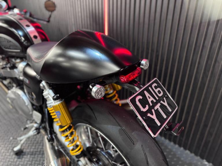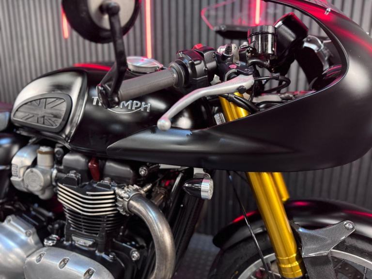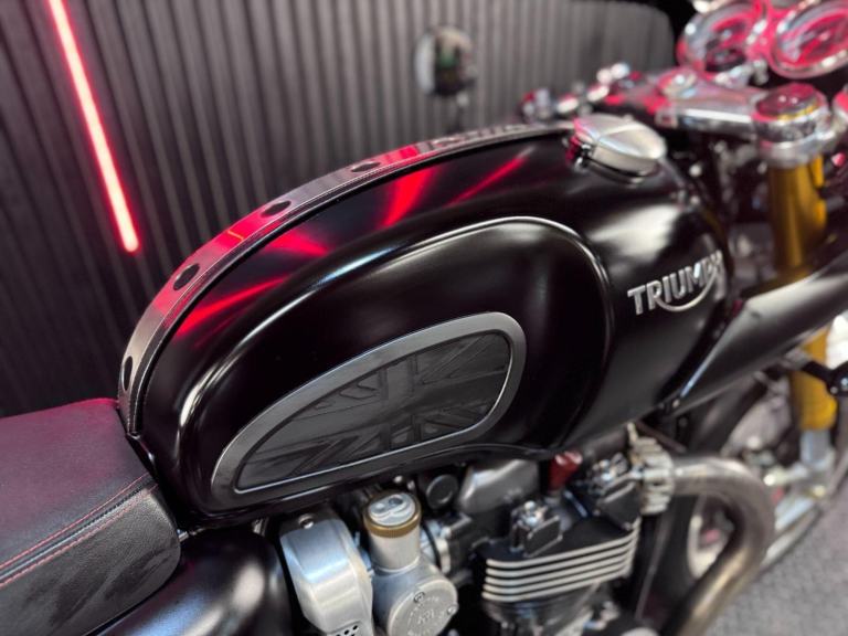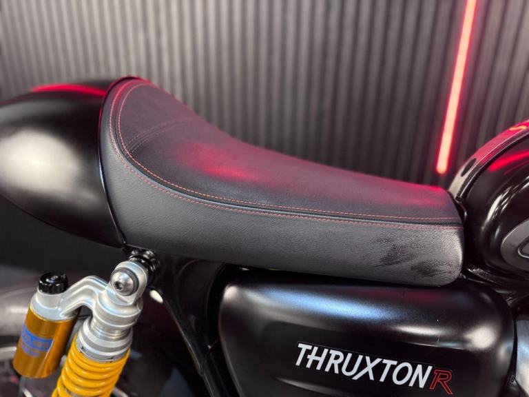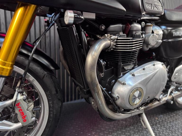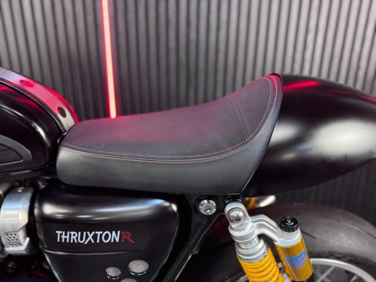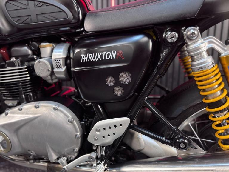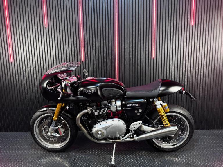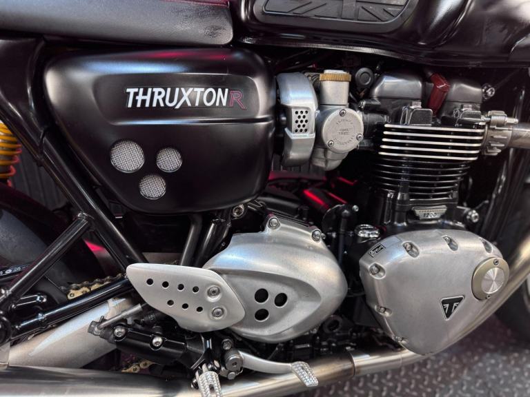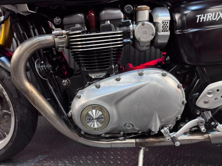 Black, 24/7 ONLINE PURCHASE AVAILABLE - This 2016 Triumph Thruxton 1200 R is the ultimate expression of the modern cafe racer, finished in a sleek and timeless Jet Black. With 13,289 miles on the clock, this motorcycle has been meticulously cared for and remains in very good condition. It has been professionally prepared for its next owner with a comprehensive general inspection, a new oil filter, and a fresh oil change. Coming complete with two original keys, this ''R'' specification model represents the pinnacle of the Thruxton line, blending authentic 1960s racer styling with high-performance modern components. The Thruxton 1200 R is powered by a ''high-power'' version of Triumph?s 1200cc parallel-twin engine. This liquid-cooled, 8-valve powerplant was specifically tuned for the Thruxton R to deliver a sharp 96hp and a massive 112Nm of torque. Unlike the standard Bonneville, the Thruxton features a low-inertia crank that allows the engine to rev faster and harder, providing a much sportier and more engaging ride. It also features a signature 270-degree firing order, which gives the bike a distinctive, offset ''thump'' and a rich, deep exhaust note through its brushed stainless steel megaphone silencers. What sets the ''R'' model apart is its incredible array of high-specification chassis components. It comes factory-fitted with fully adjustable Showa Big Piston Forks and twin Öhlins rear shocks with piggyback reservoirs, offering a level of handling and road-holding that is genuinely world-class.***Rest assured, your new bike includes a 3-month warranty (extension options available) and is guaranteed to have at least 6 months remaining on the MOT. Making your purchase simple: Explore our flexible finance plans and benefit from our affordable nationwide delivery service. Important Note on Viewing: Stock moves quickly! If you are planning to view a particular model, we kindly ask that you call us first to confirm its availability and avoid any disappointment***, 3 owners, 2 keys, ABS, Electric start, Rear Hugger, Screen, Stainless Exhaust, Please visit our website to buy online, apply for finance or find out about our delivery prices.