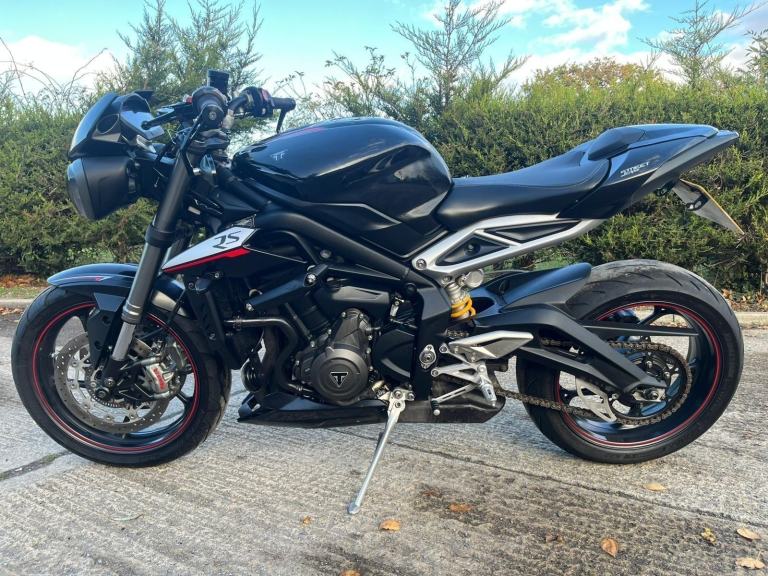 2017 17 TRIUMPH STREET TRIPLE RS 765, Naked, 18k miles only, RS model so has the desirable components such as Brembo radial callipers etc etc, will have new 12 months MOT for purchaser, HPI clear, original service book and owners manual present, excellent service history with 7 stamps in the book.
