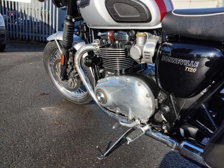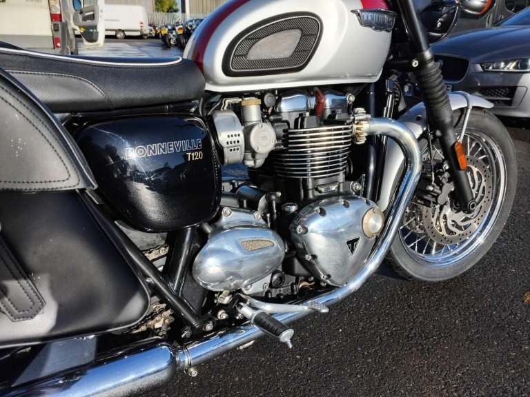 Red Triumph Bonneville T120, year 2017 (66 reg.), 1,289 miles. MOT included in the price. PLEASE VISIT OUR WEBSITE DIRECTLY FOR THE FULL RANGE OF UP-TO-DATE STOCK WHICH MAY NOT BE ON OTHER PLATFORMS. VIEWING STRICTLY BY APPOINTMENT ONLY. Visit [Website URL removed] call 01759 591666 or email [Email address removed. Click Email button to contact us.] for more details.