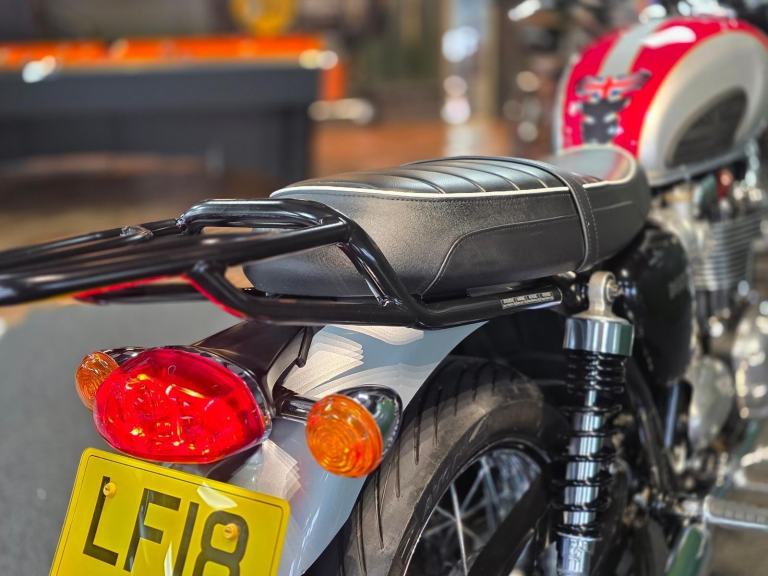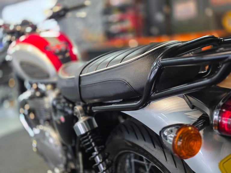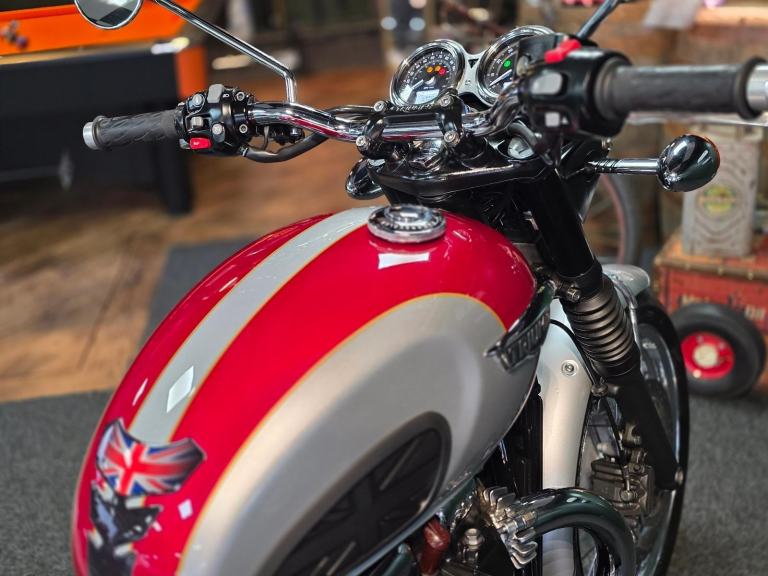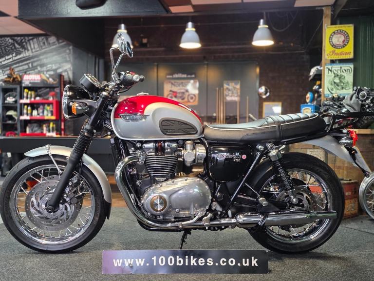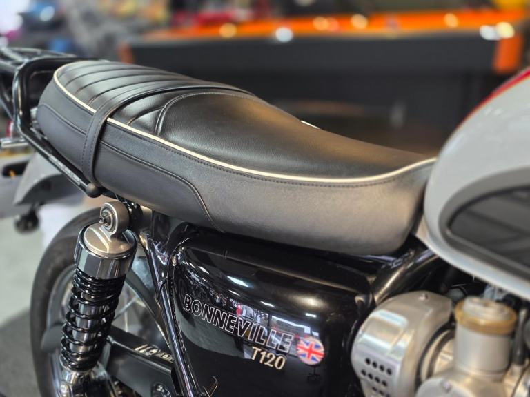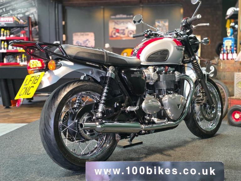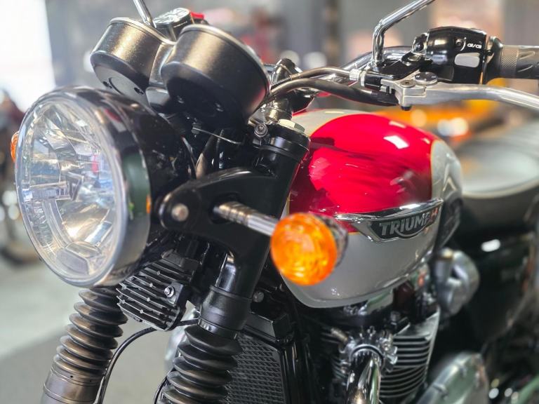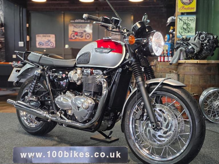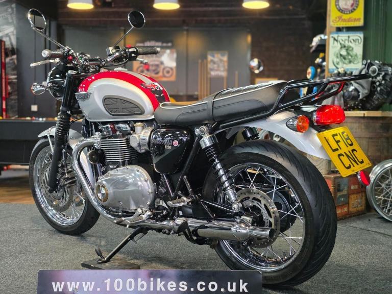 2018 Triumph Bonneville T120 Silver/Cranberry Metallic with 12,000 Mile's. Lovely bike this one. Looks like a 2,000.mile bike. Heated Triumph Grips, Centre Stand, Fender Extender, Rack, Custom Brake Reservoir.. nice Rasp to the Pipes also... £5,995 Dont think you'll find a cleaner one.