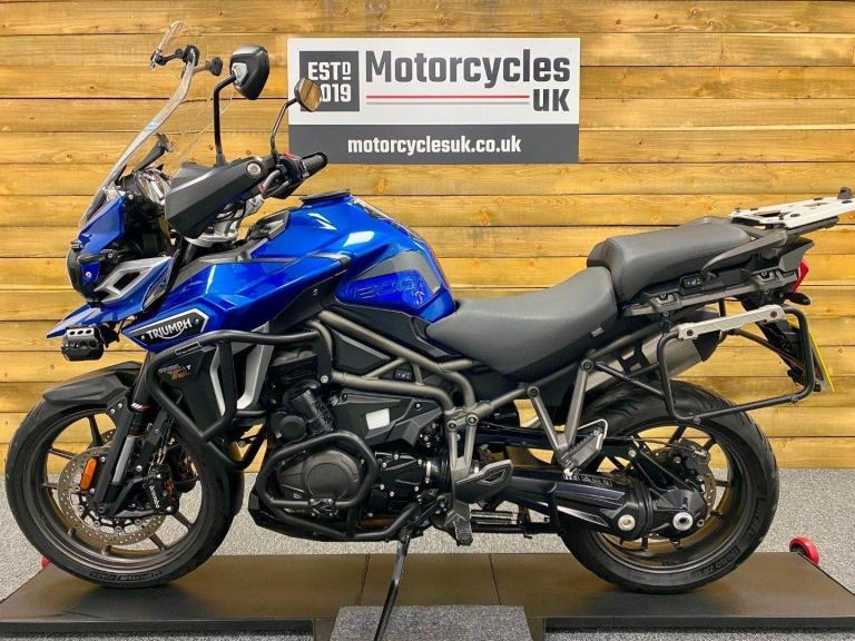 Triumph Tiger Explorer 1200 XRT, 2018, 18 Plate, 26,228 Miles, 3 Owners from New with Full service history on mileage and in Superb condition. The awesome Tiger Explorer 1200 XRT is the top-spec road-focused model offering a powerful triple engine, shaft drive, and a full suite of touring and rider-assist specification including; Aluminium Outback Panniers, Tank bag, Cornering ABS Brakes, Switchable riding modes; rain, road, sport, off-road, rider configurable, Switchable traction control, WP Suspension, Cruise control, Hill hold control, Spot lights, Heated grips, Heated seat, Hand guards, Fairing & Engine protection bars, Tyre pressure monitoring system, Fender extender, Givi rear rack, Radiator guard, Bash plate and Centre stand. This top-spec XRT is ready for cross-continent adventures or refined daily use, hurry call today for further details.