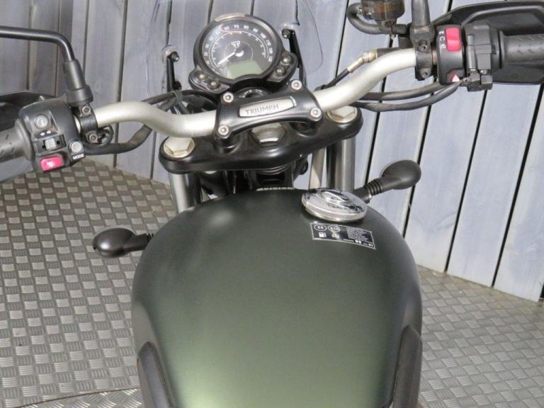 This 2019 GREEN TRIUMPH STREET SCRAMBLER motorbike has done 7046 miles and is in excellent condition. It's available for collection from our DONINGTON showroom or can be delivered anywhere on the UK Mainland. This bike has 1 previous owner, comes with 2 Keys, and a PART SERVICE HISTORY.