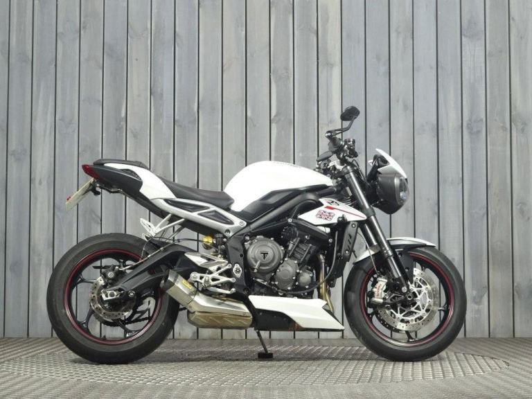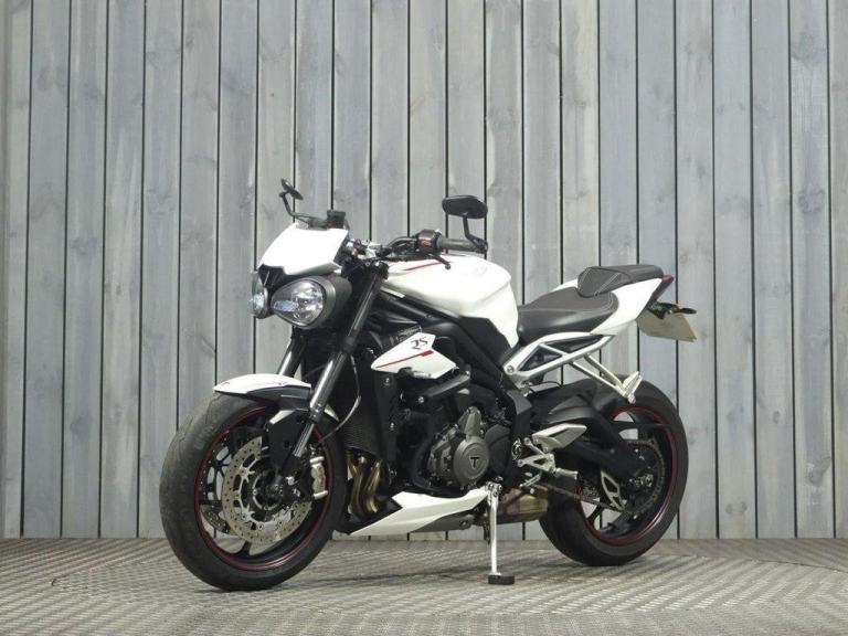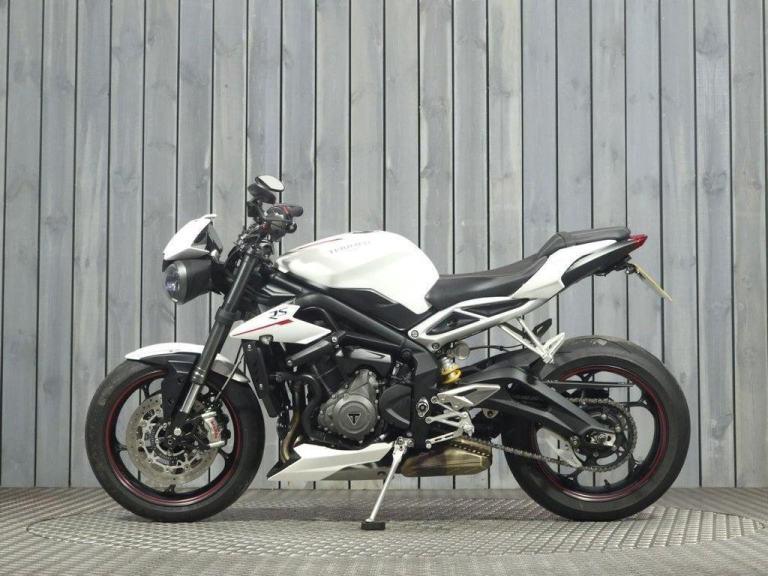 This 2019 WHITE TRIUMPH STREET TRIPLE 765 motorbike has done 6474 miles and is in excellent condition. It's available for collection from our MACCLESFIELD showroom or can be delivered anywhere on the UK Mainland. This bike has 3 previous owners, comes with 2 Keys, and a PART SERVICE HISTORY.