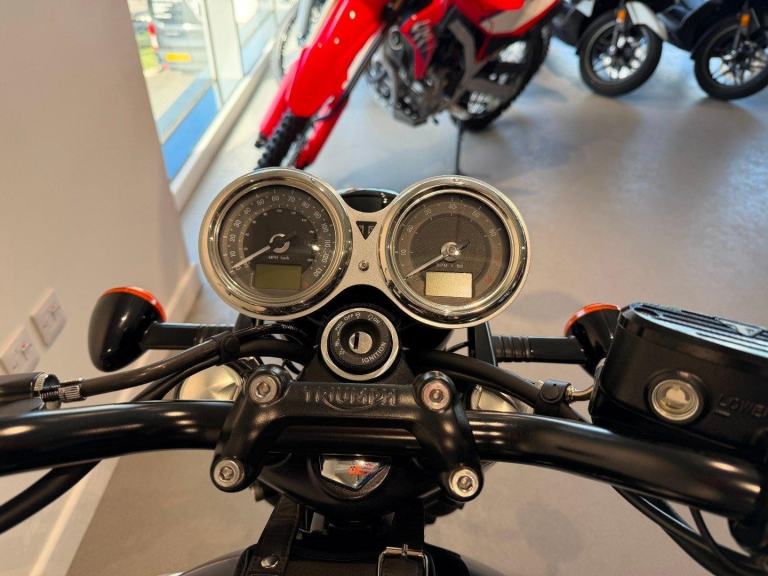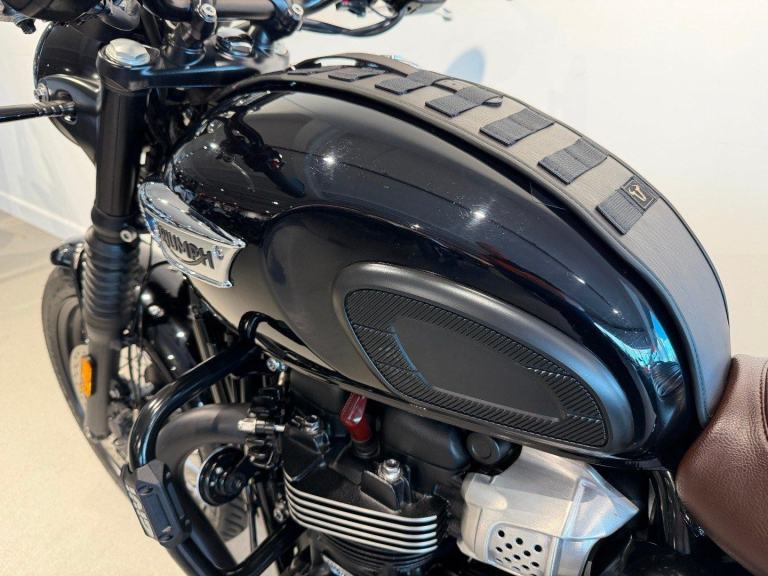 Upgraded with a few nice extras including the Givi Engine Bars, SW Motech Quick Release Panniers & Leather Style Tank Strap. We will put this T100 through our official Triumph workshop to check that it is all serviced up to date and in line with Triumph Manufacturers requirements, and make sure there is a clean MOT on there for you too.
