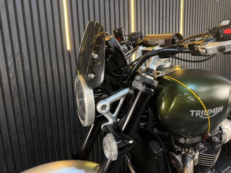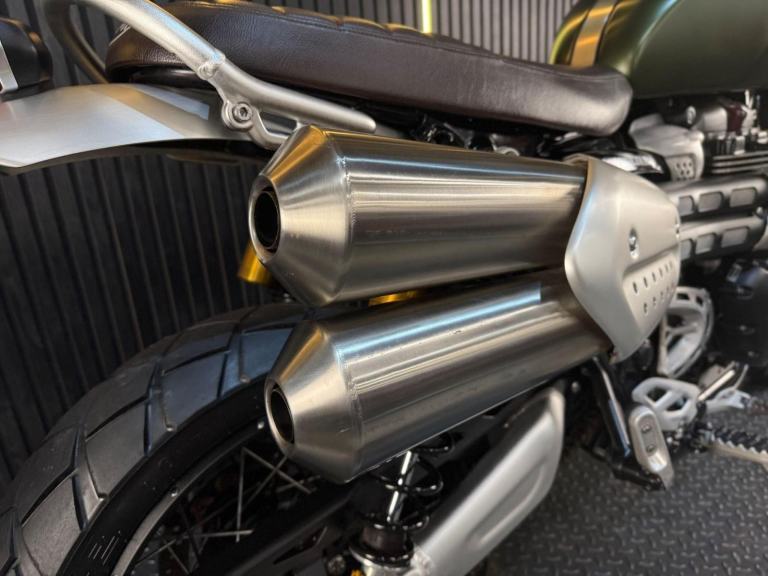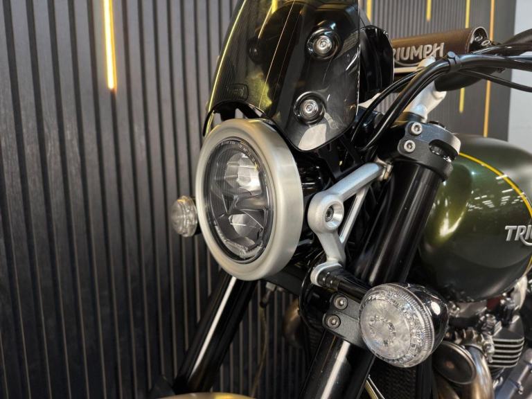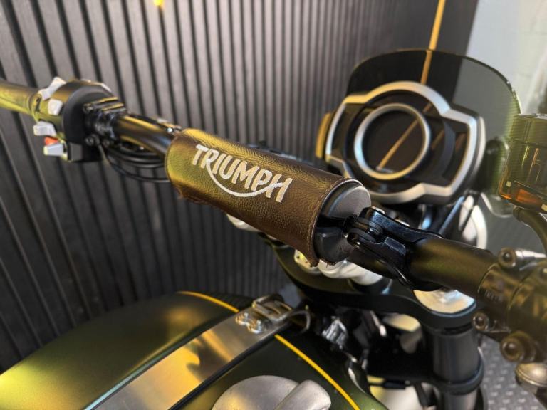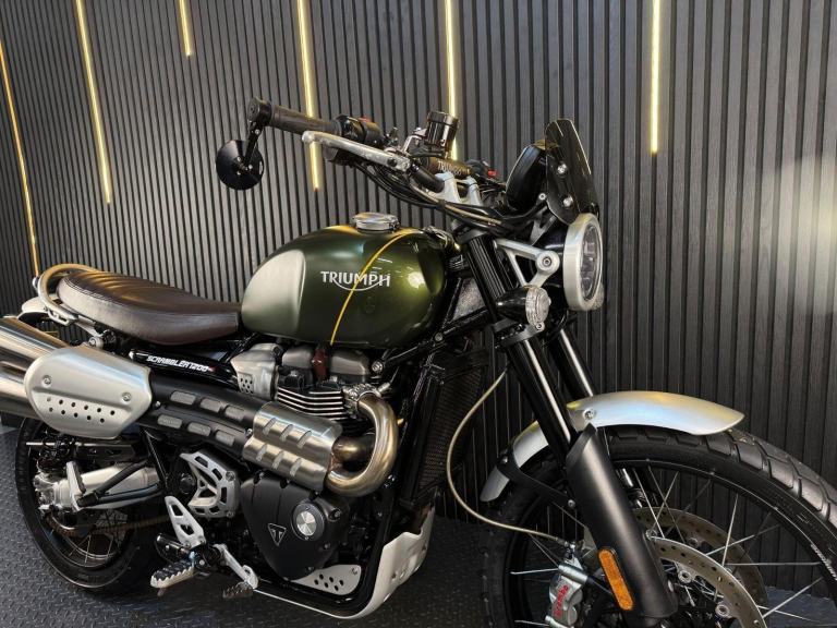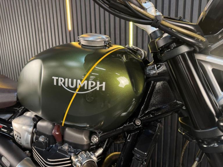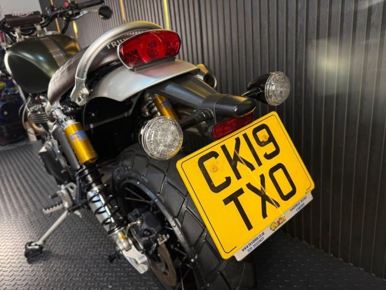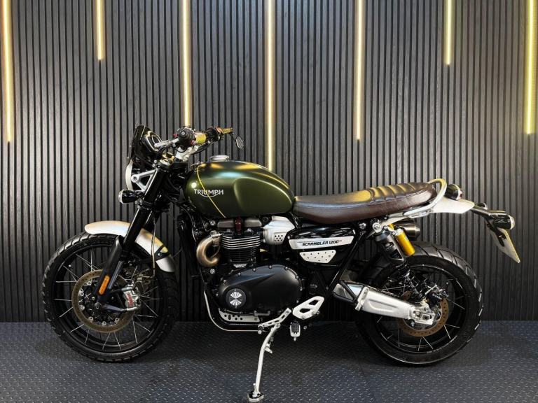 Green, 24/7 ONLINE PURCHASE AVAILABLE - For sale is a stunning 2019 Triumph Scrambler 1200 XC, a fantastic example of the premium adventure classic, finished in the distinctive Khaki Green. This powerful machine has covered a low 6,896 miles and is in excellent, well-maintained condition. As the capable 'XC' model, it features a 21-inch front wheel and long-travel suspension. For your complete peace of mind, it has just received a fresh oil and filter change along with a full general inspection, ensuring it is mechanically perfect. Please note, the bike comes with one keyless ignition fob, and this has been fairly reflected in the competitive asking price. This is a brilliant opportunity to own a high-spec scrambler. The Triumph Scrambler 1200 XC is Triumph's rugged adventure classic, blending authentic 1960s aesthetics with modern off-road competence. It is powered by the celebrated 1200cc 'High Power' Bonneville parallel-twin engine, which delivers a huge, accessible wave of torque and a distinctive soundtrack. The 'XC' model is built for genuine dual-purpose riding, featuring a large 21-inch front wheel and long-travel Showa/Öhlins suspension to confidently handle rough terrain. This capability is managed by a sophisticated electronics suite, including multiple riding modes, IMU-governed cornering ABS and traction control, making it the definitive choice for the rider who wants a truly capable, high-spec modern classic for both road and trail.***Rest assured, your new bike includes a 3-month warranty (extension options available) and is guaranteed to have at least 6 months remaining on the MOT. Making your purchase simple: Explore our flexible finance plans and benefit from our affordable nationwide delivery service. Important Note on Viewing: Stock moves quickly! If you are planning to view a particular model, we kindly ask that you call us first to confirm its availability and avoid any disappointment***, 2 owners, ABS, Electric start, Stainless Exhaust, Tinted Screen, Please visit our website to buy online, apply for finance or find out about our delivery prices.