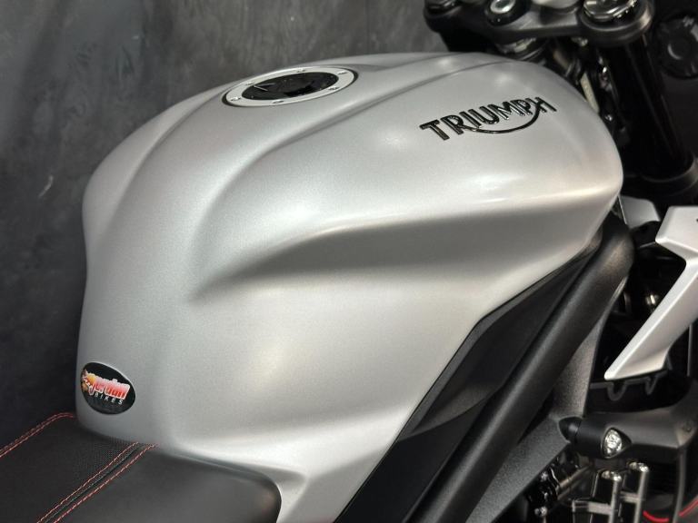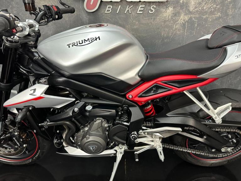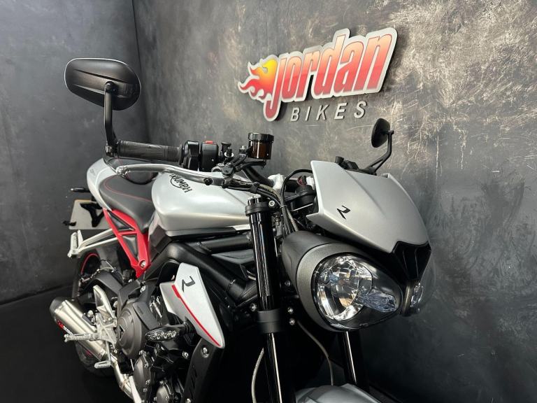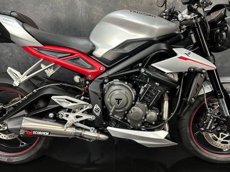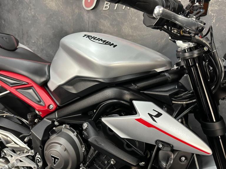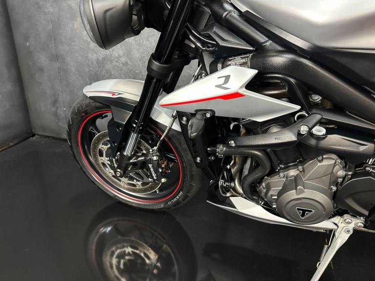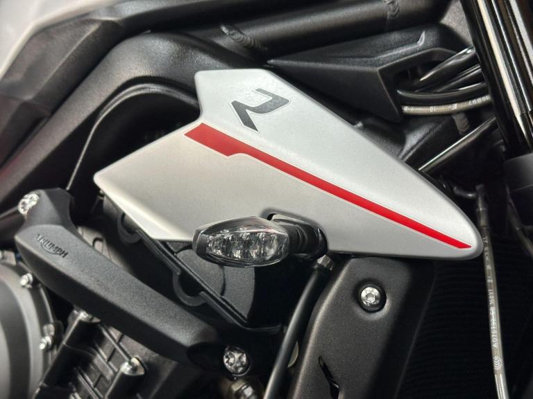 Silver, This is a gorgeous looking bike, and comes with some really nice extras fitted, and has super low mileage for its year. The 'R' model comes with a TFT display, riding modes, ABS, Traction Control, fully adjustable 41mm Showa forks, and Brembo monobloc brakes. This bike then comes with a Scorpion exhaust with decat which sounds incredible, Triumph factory quick shifter, and Triumph factory frame protection., 1 owners, , For a personal walk-round high resolution video please give us a call.