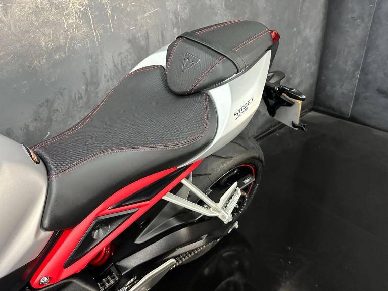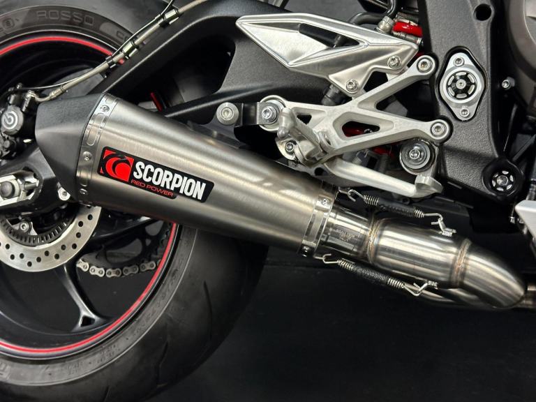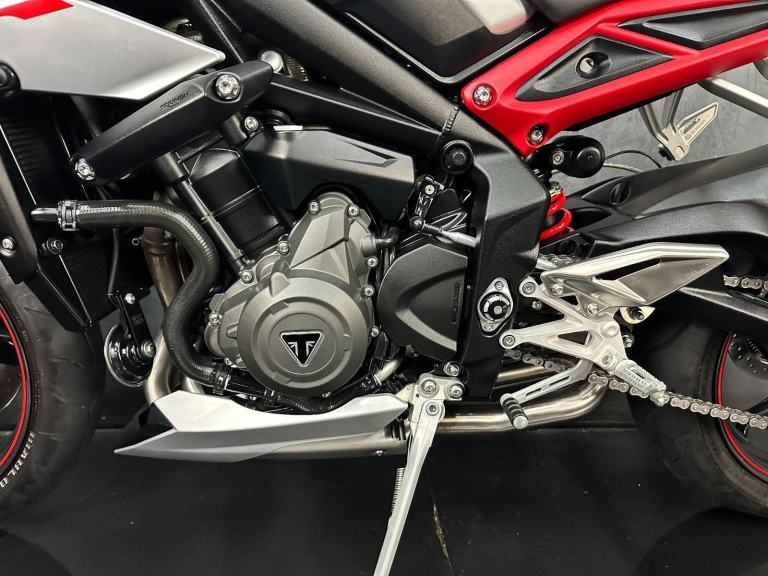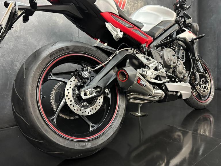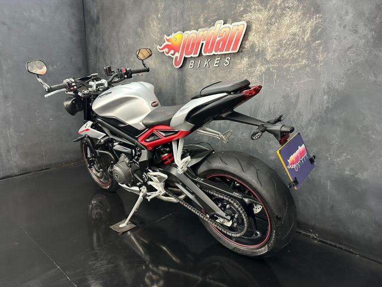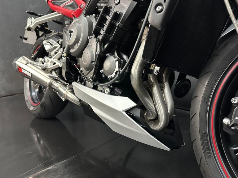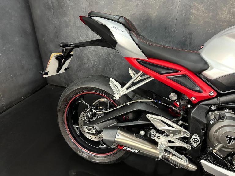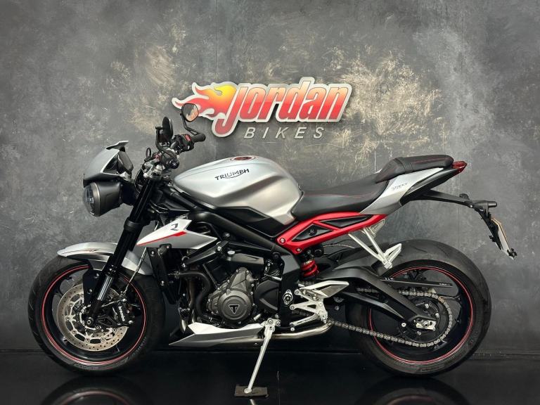 Silver, This is a gorgeous looking bike, and comes with some really nice extras fitted, and has super low mileage for its year. The 'R' model comes with a TFT display, riding modes, ABS, Traction Control, fully adjustable 41mm Showa forks, and Brembo monobloc brakes. This bike then comes with a Scorpion exhaust with decat which sounds incredible, Triumph factory quick shifter, and Triumph factory frame protection., 1 owners, , For a personal walk-round high resolution video please give us a call.
