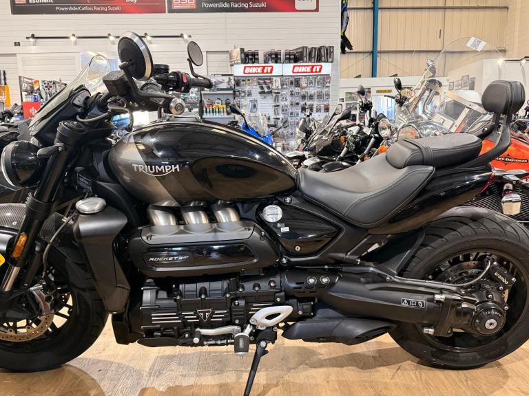 Just arrived in @ Powerslide Derby is this gorgeous example of the awesome Triumph Rocket 3 GT Triple Black. Limited edition and loaded with tech such as rider modes, quickshifter, traction control and more. Covered just over 2 k miles and in excellent condition. This bike needs to be seen to be appreciated