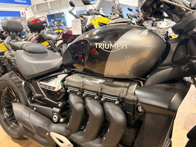 Just arrived in @ Powerslide Derby is this gorgeous example of the awesome Triumph Rocket 3 GT Triple Black. Limited edition and loaded with tech such as rider modes, quickshifter, traction control and more. Covered just over 2 k miles and in excellent condition. This bike needs to be seen to be appreciated