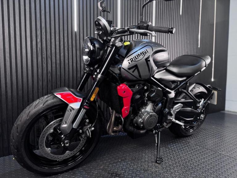 Silver, 24/7 ONLINE PURCHASE AVAILABLE - For sale is this stunning 2021 Triumph Trident 660, finished in a sleek and modern Silver and Black. This bike is in near-immaculate condition, having covered only 2,964 miles from new. It represents a fantastic opportunity to own a high-spec, modern-retro naked bike that feels and looks practically brand new. For your complete peace of mind, it has just received a fresh oil and filter change along with a full general inspection, ensuring it is mechanically perfect for its next owner. It comes complete with two keys and all original documentation. The Triumph Trident 660 is the definitive choice for the rider who wants a perfect blend of triple-cylinder character and modern technology. It is powered by a dedicated 660cc three-cylinder engine, providing a unique balance of low-down torque and a thrilling top-end rush that a twin-cylinder simply cannot match. What sets the Trident apart from its competitors is its premium feel and high level of standard equipment; it features a colour TFT display, full LED lighting, and two riding modes (Road and Rain) as standard. The handling is incredibly light and confidence-inspiring, thanks to its high-specification Showa upside-down (USD) forks and Nissin brakes. With its class-leading service intervals and refined ''Neo-Retro'' styling, the Trident 660 remains the definitive choice for both new and experienced riders seeking a sophisticated, fun, and easy-to-ride motorcycle with a premium British badge.***Rest assured, your new bike includes a 3-month warranty (extension options available) and is guaranteed to have at least 6 months remaining on the MOT. Making your purchase simple: Explore our flexible finance plans and benefit from our affordable nationwide delivery service. Important Note on Viewing: Stock moves quickly! If you are planning to view a particular model, we kindly ask that you call us first to confirm its availability and avoid any disappointment***, 0 owners, 2 keys, ABS, Electric start, Rear Hugger, Stainless Exhaust, Please visit our website to buy online, apply for finance or find out about our delivery prices.