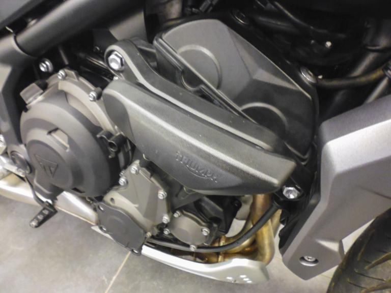 This example is in great condition and has clearly been proper;y looked after. Fitted with Michelin Pilot Road 6 tyres, front spiddle protectors, fly screen, engine sliders, bar end mirrors, belly pan, and Triumph heated grips.